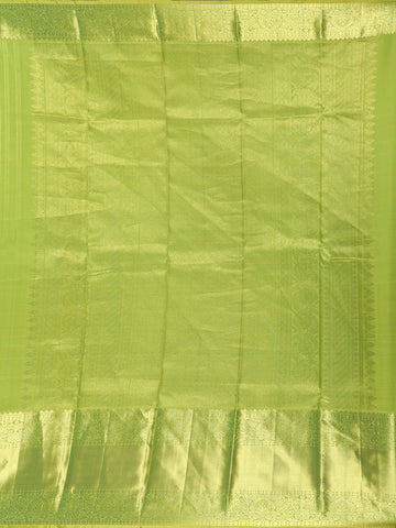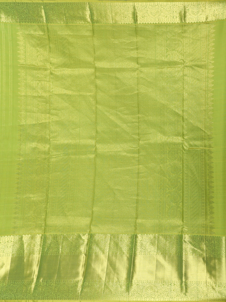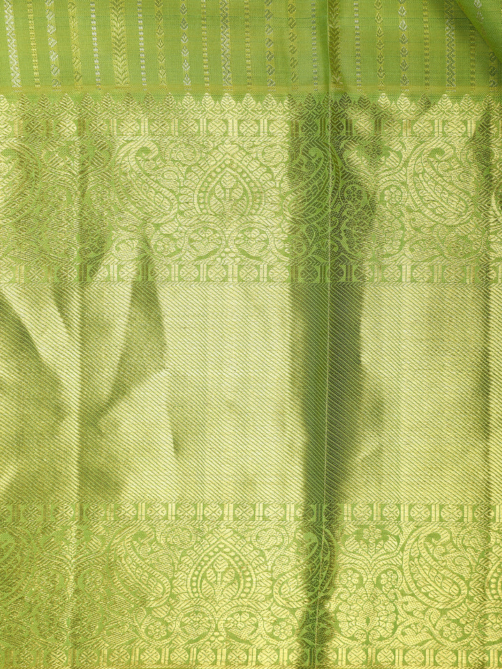 Parrot Green Striped Woven Design Pure Kanchipuram Silk Saree