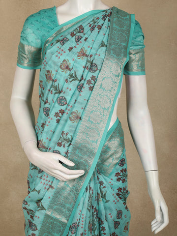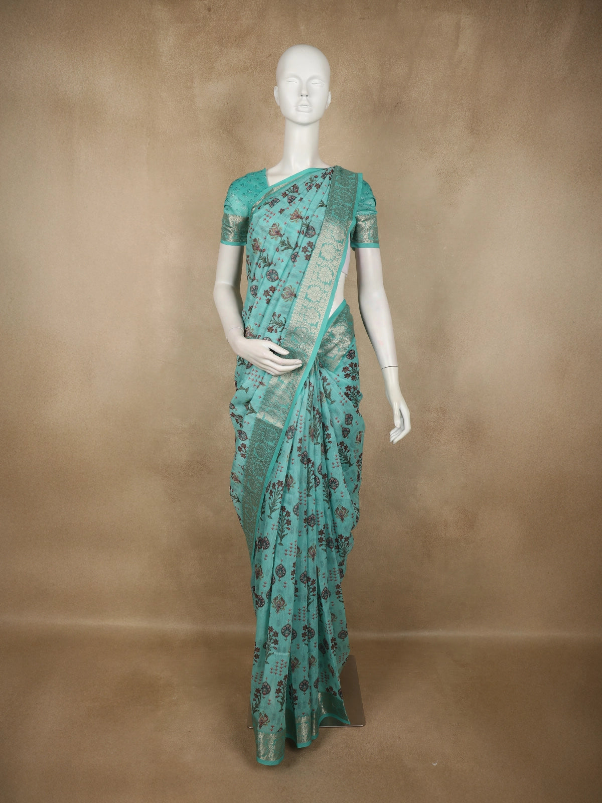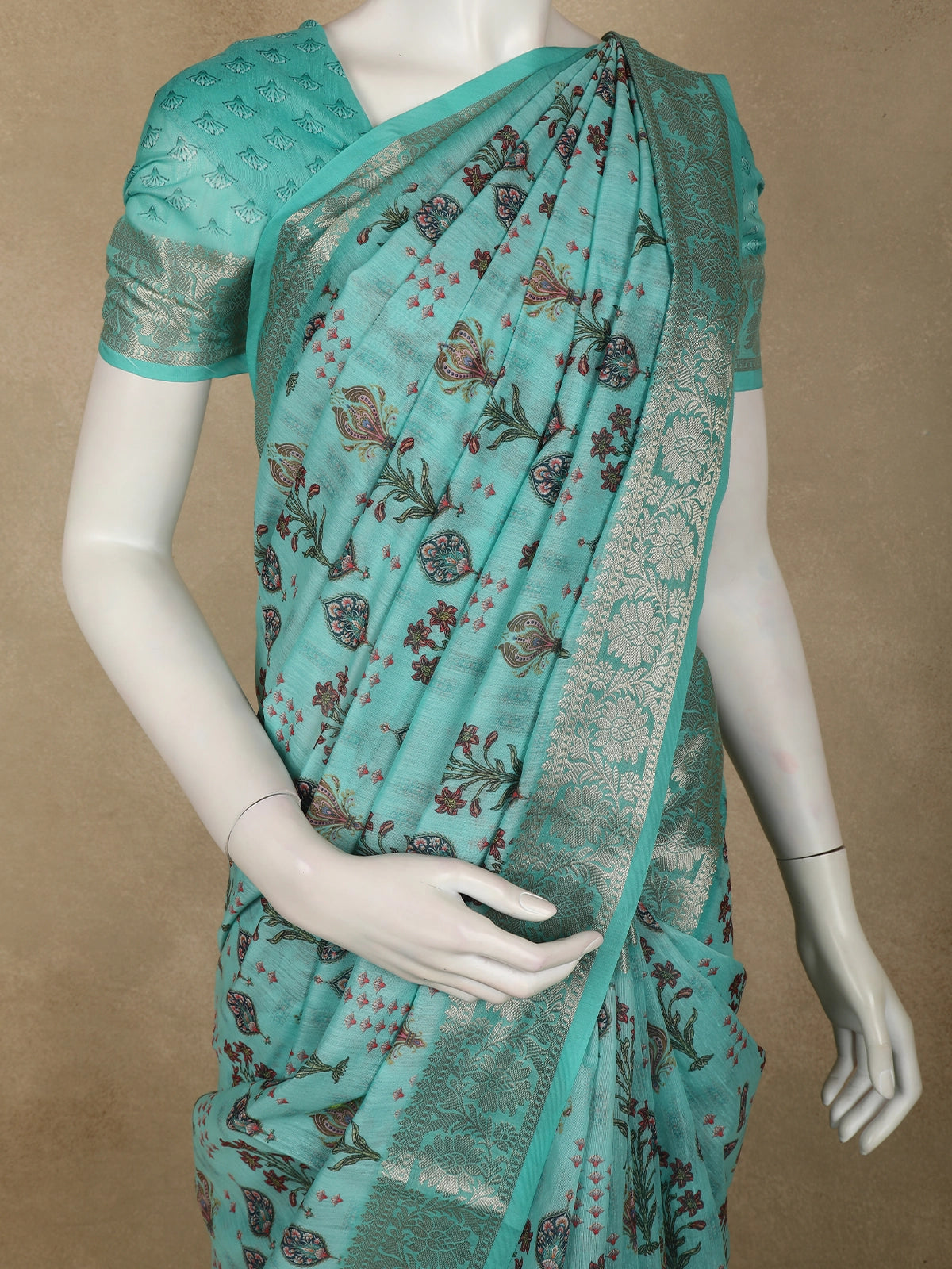 Pastel Aqua Blue Floral Design Art Silk Designer Saree