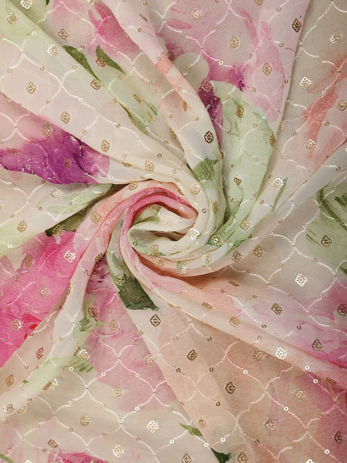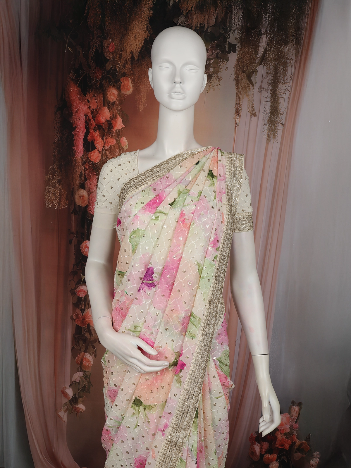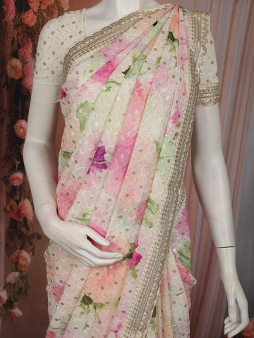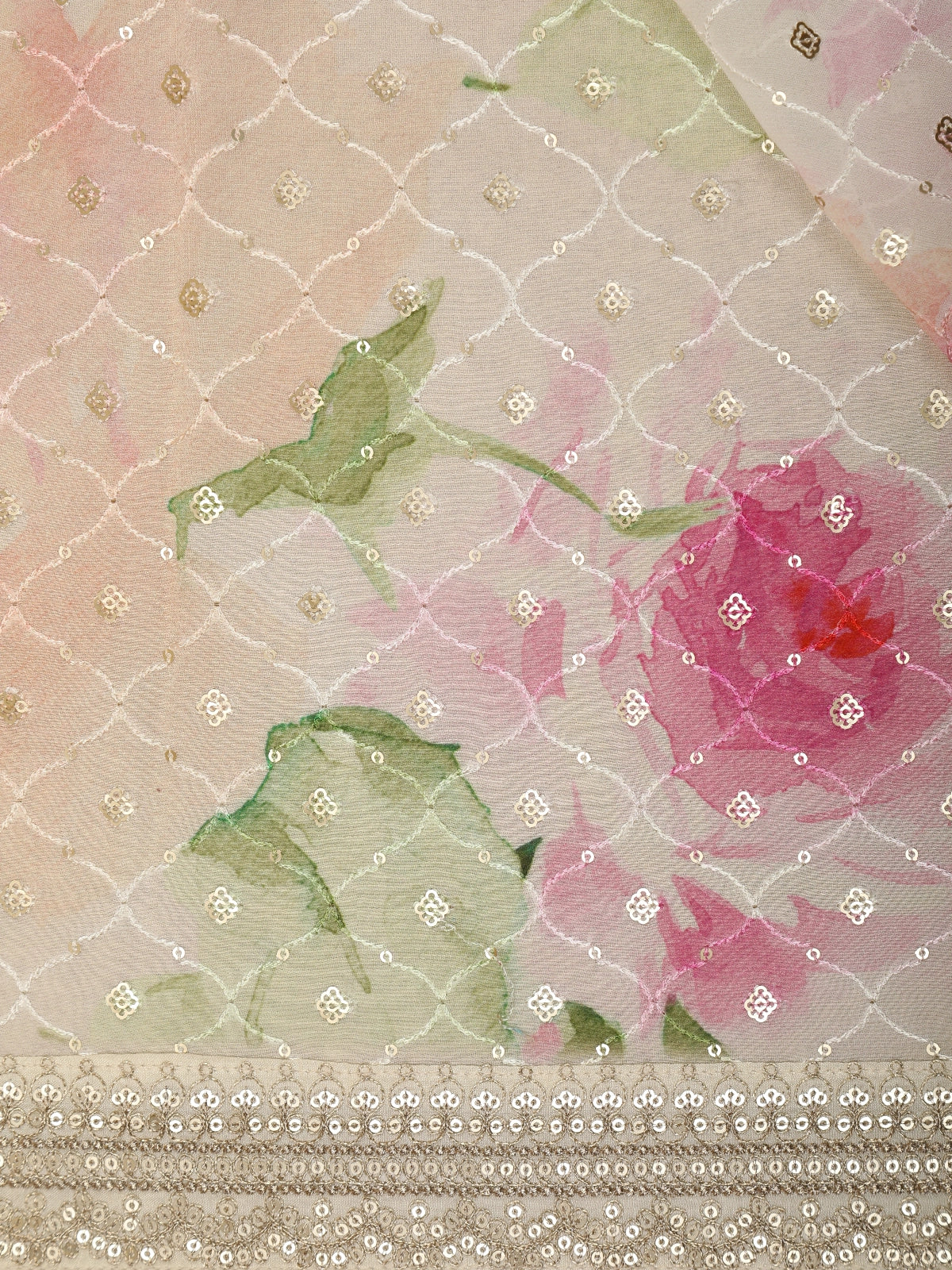 Pastel Floral Sequins Embellished Design Georgette Saree with Embroidered Border