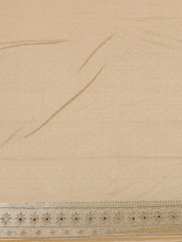 The highlight of the saree lies in its rich designer zari border and contrast gold pallu, adding a regal touch to the subtle hues. The fine weaving technique and shimmering texture of Banarasi silk bring out an aura of grace and grandeur, perfect for festive occasions, weddings, and celebrations.