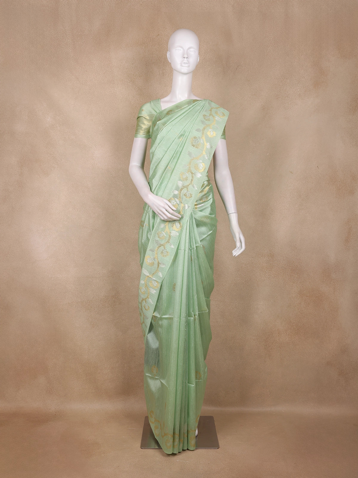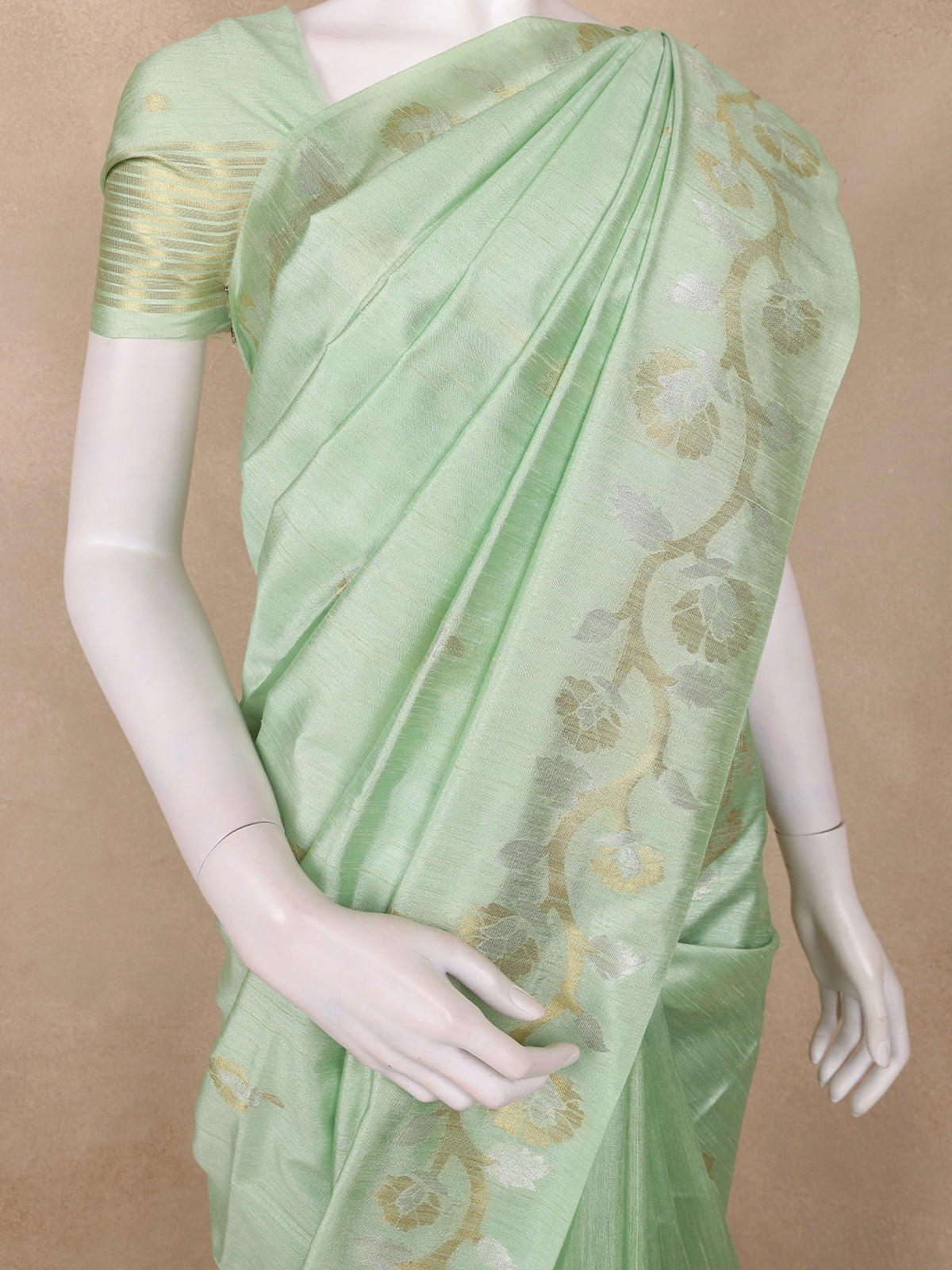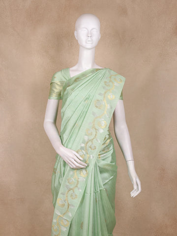 Pastel Green Floral Butta Woven Design Semi Tussar Saree