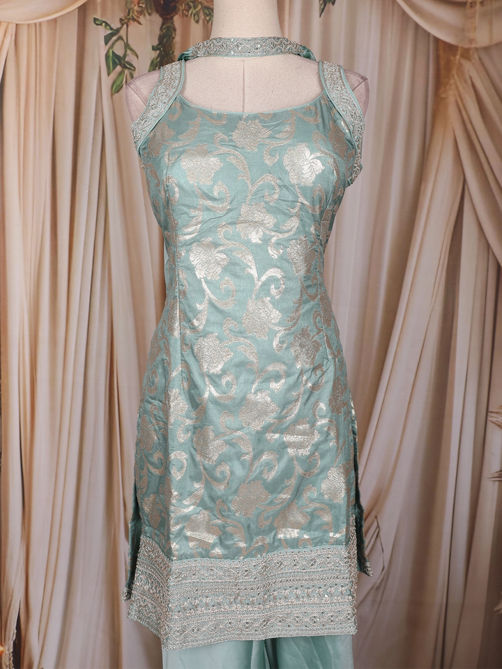 Pastel Green Floral Design Silk Palazzo Suit with Dupatta