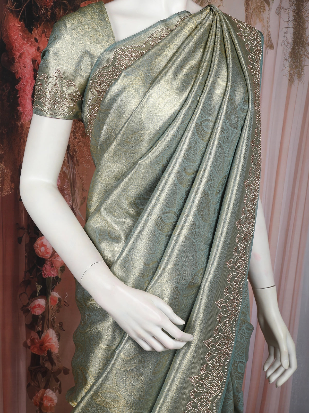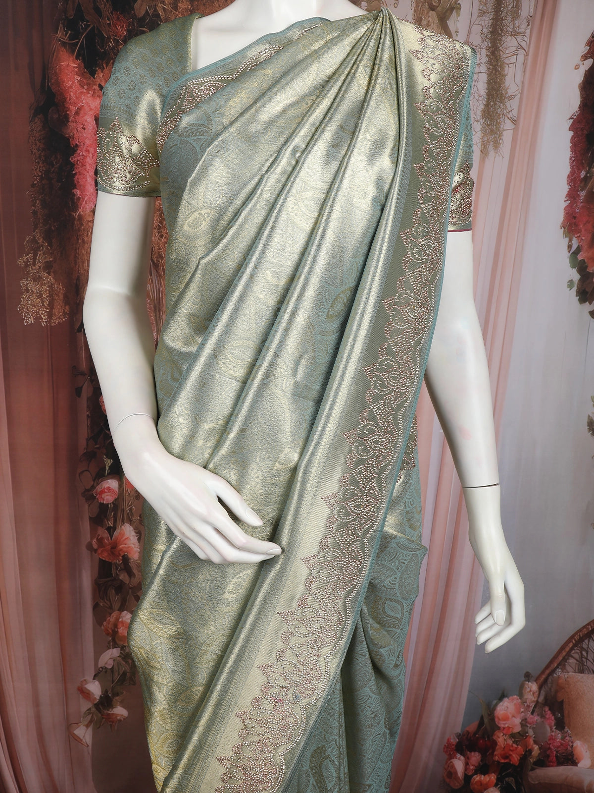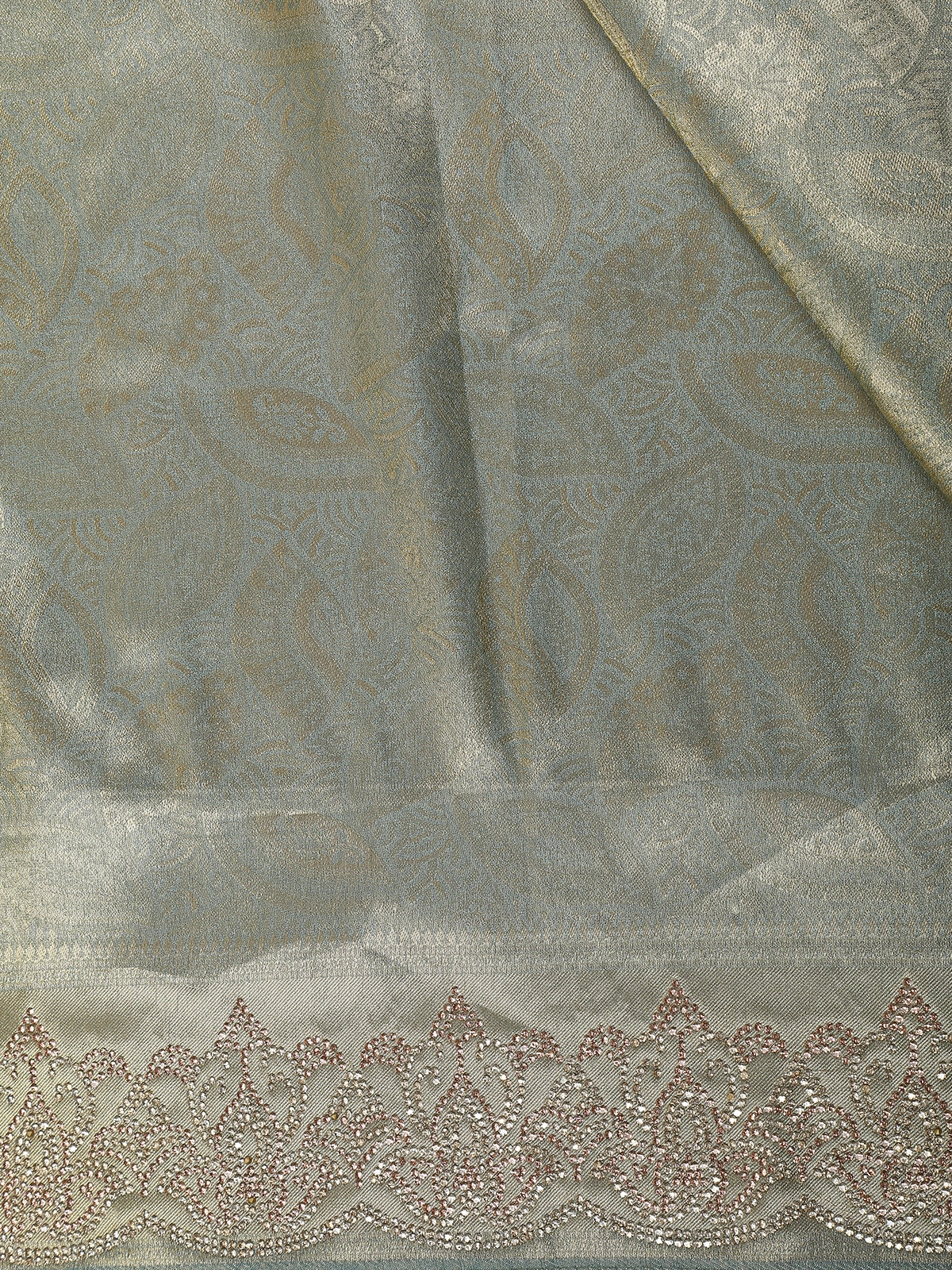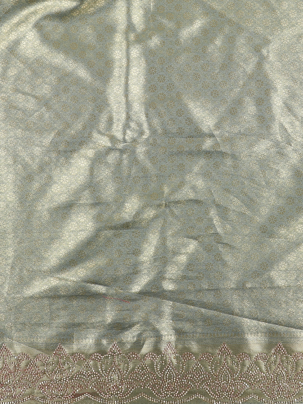 Pastel Green Floral Design Woven Soft Tissue Saree with Designer Border