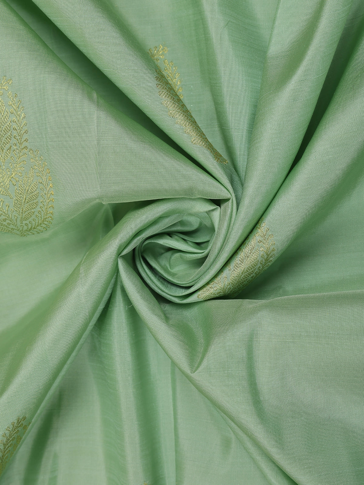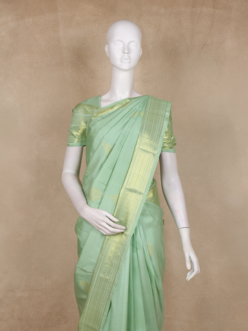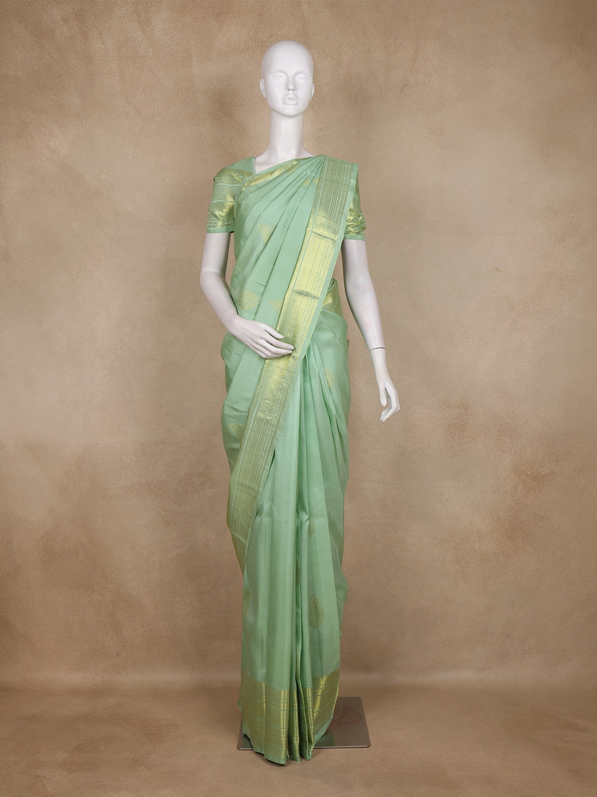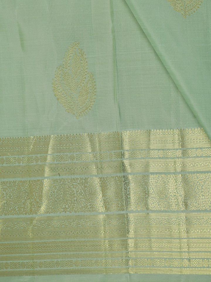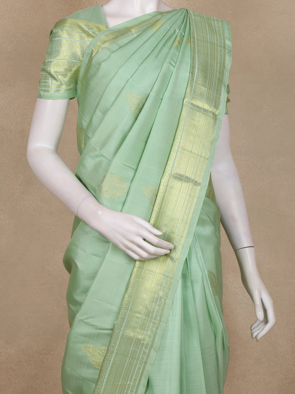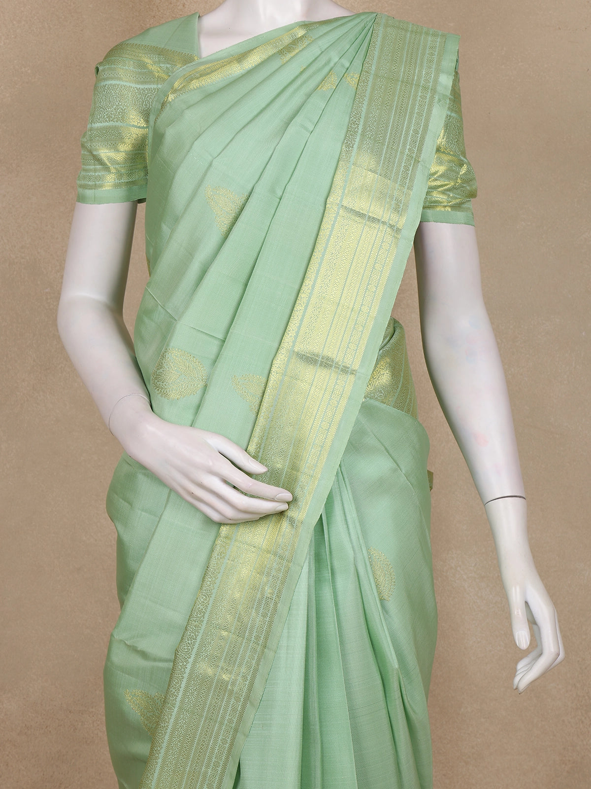 Pastel Green Zari Butta Woven Design Pure Kanchipuram Silk Saree with Zari Border