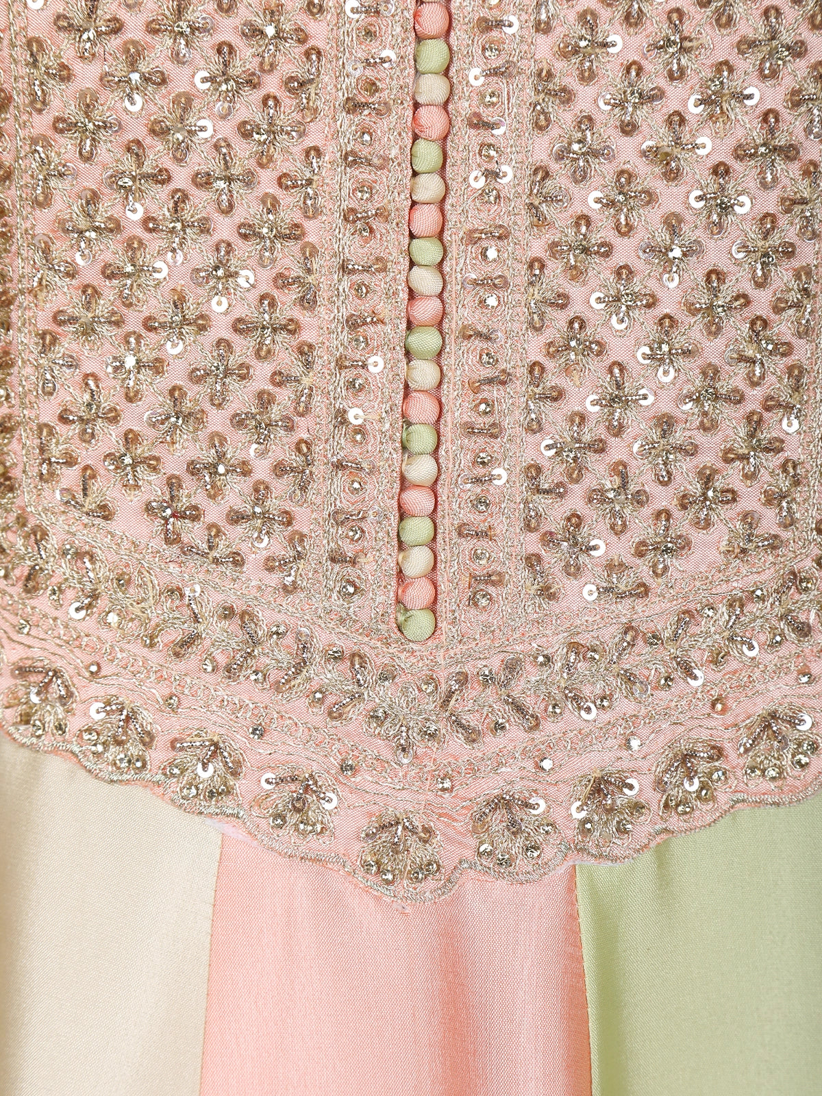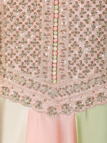 Pastel Peach and Pista Green Sequins Embroidered Satin Anarkali Gown with Dupatta