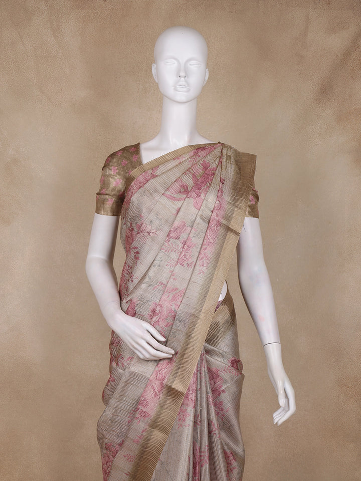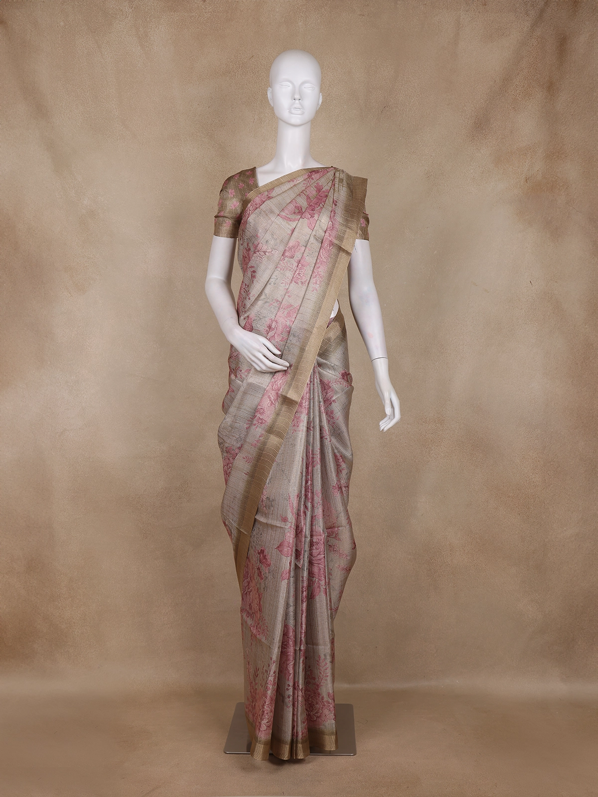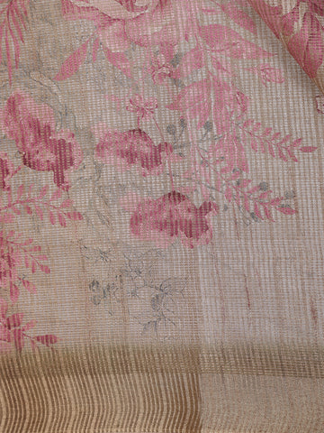 Pastel pink Floral Design Tissue Silk Saree with Zari Border