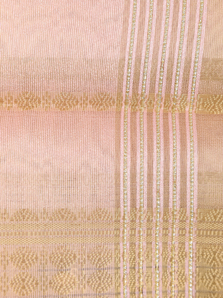 Pastel Pink Stripes Woven Tissue Saree with Zari Border