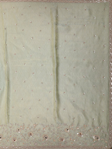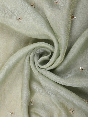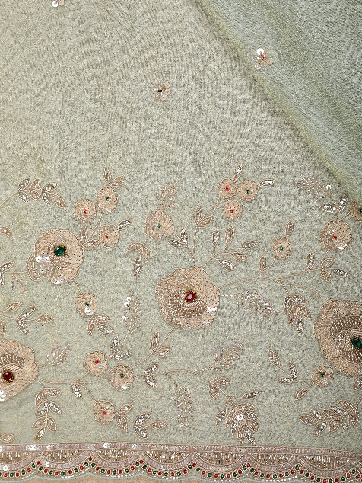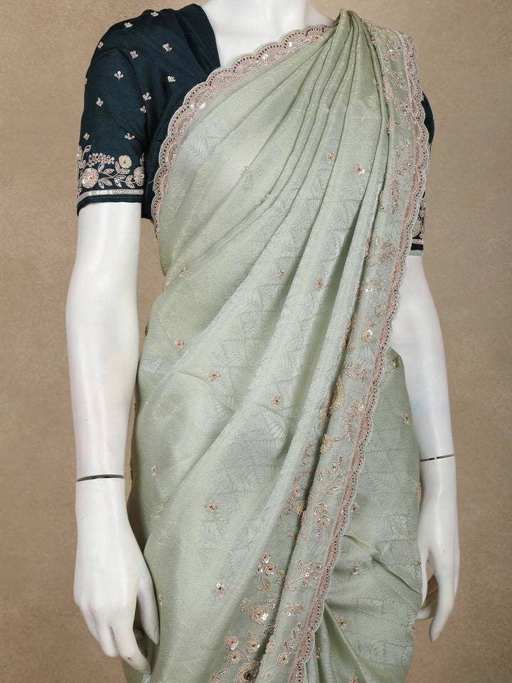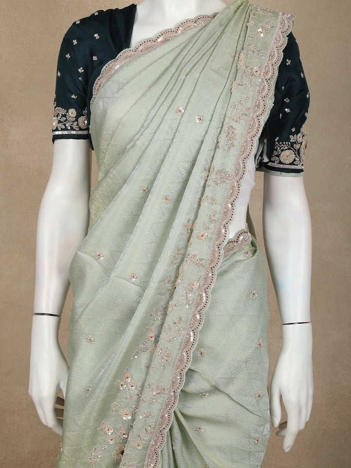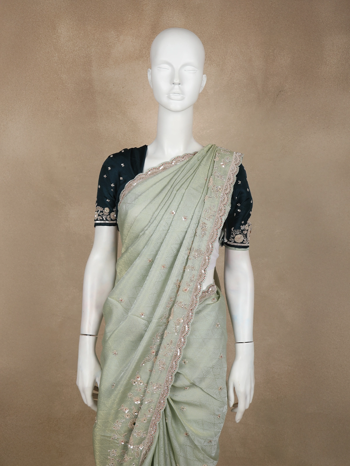 Pastel Sage Green Floral Sequins Embroidered Tissue Saree