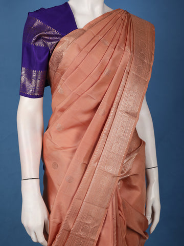 Peach Butta Woven Design Pure Kanchipuram Silk Saree