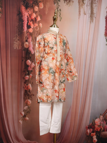 Peach Floral Digital Printed Design Cotton Kids Kurta Set
