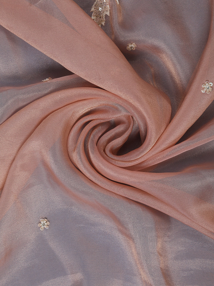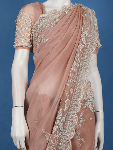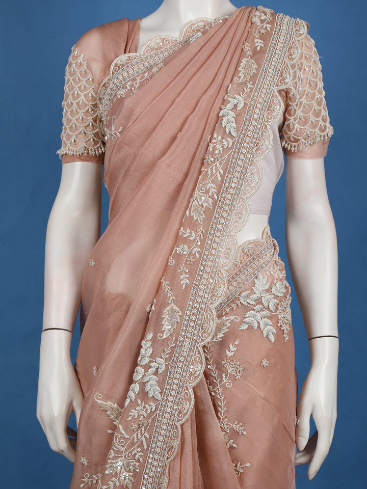 Peach Floral Embroidered Design Net Organza Tissue Saree With Designer Blouse