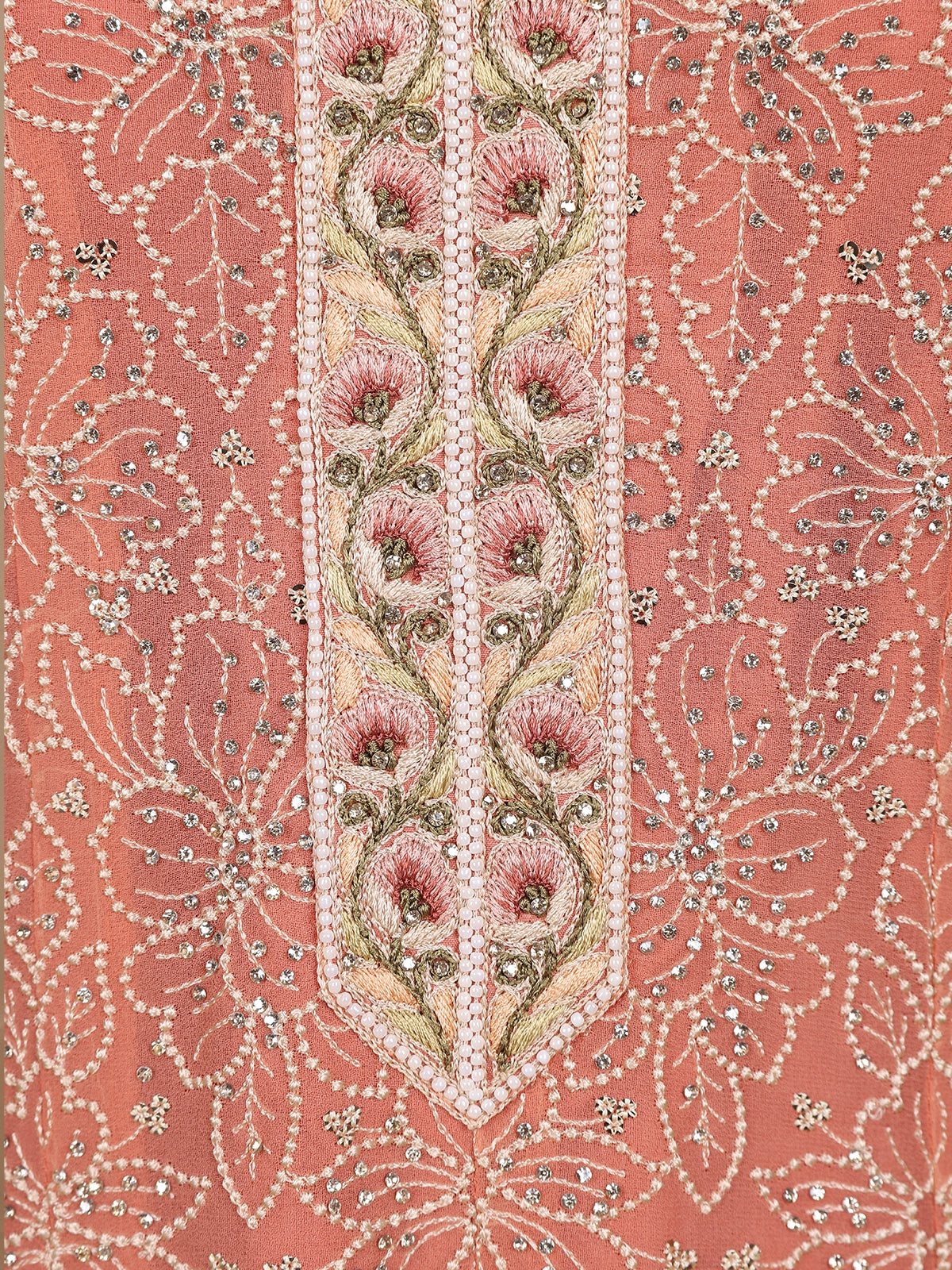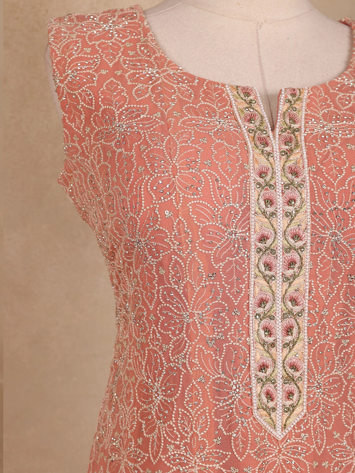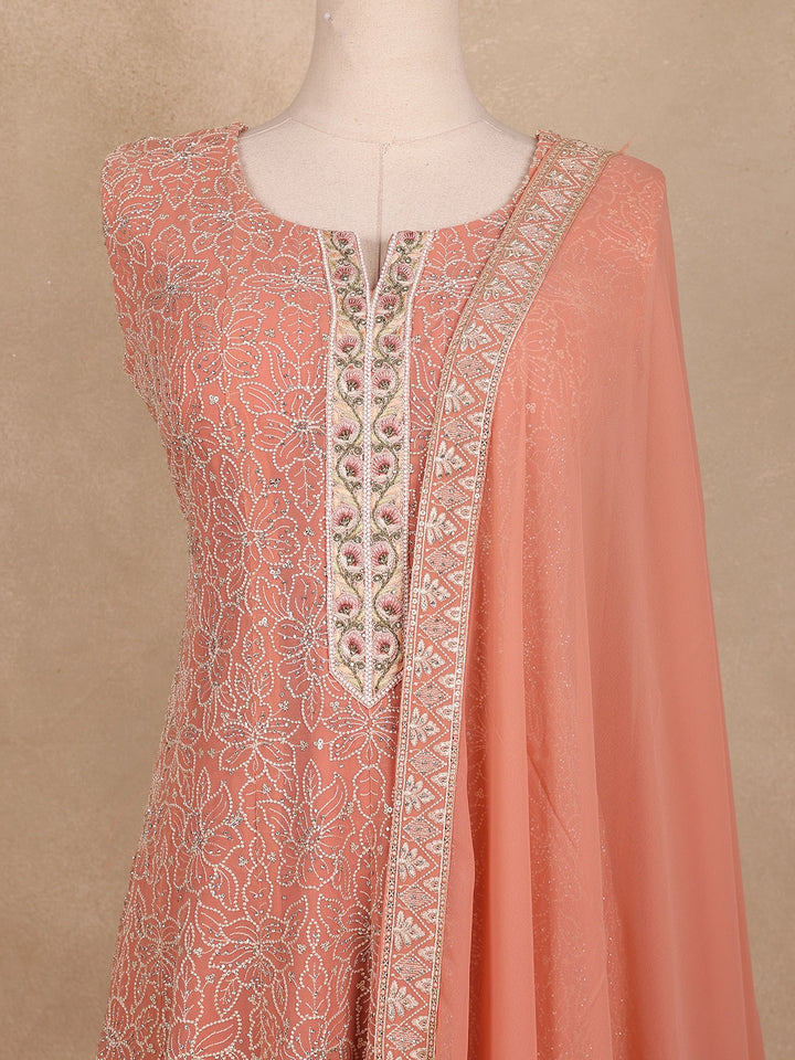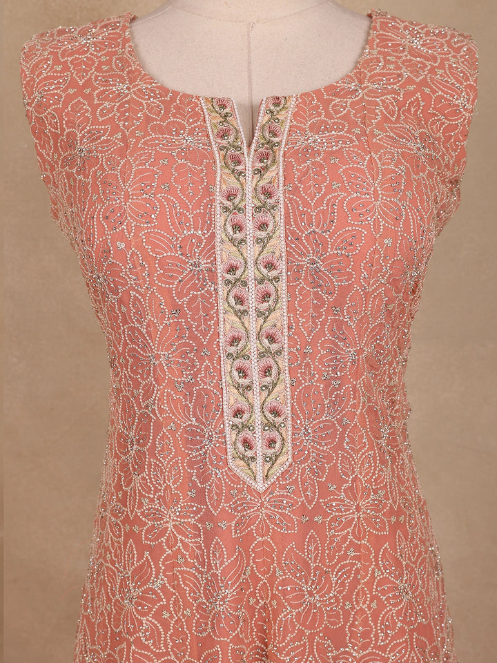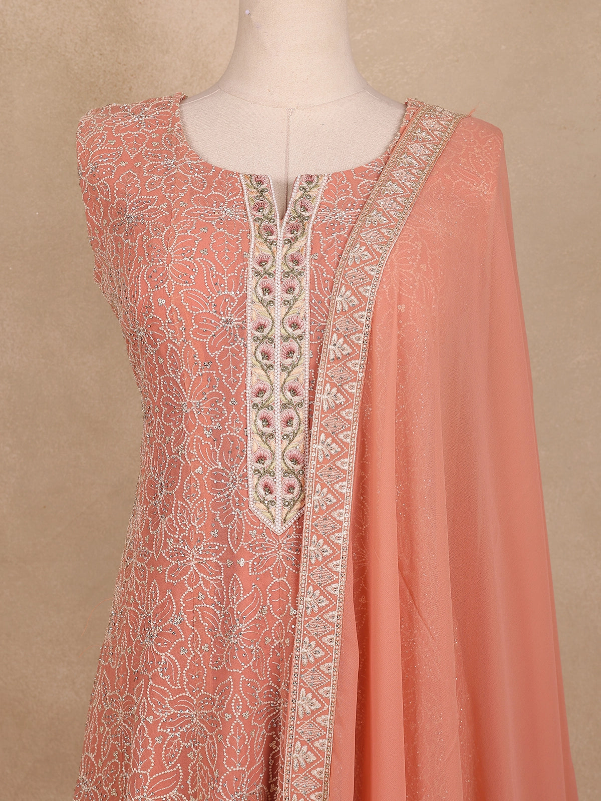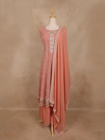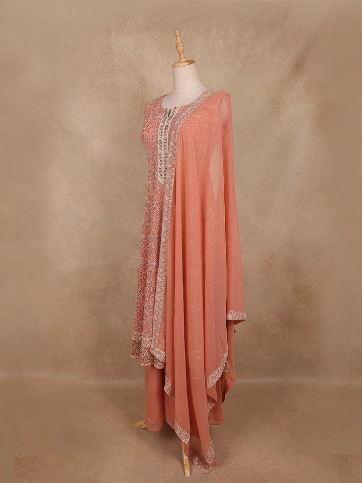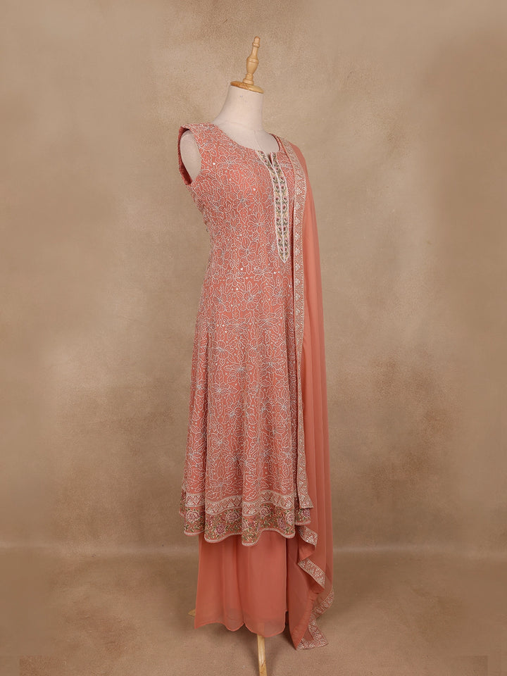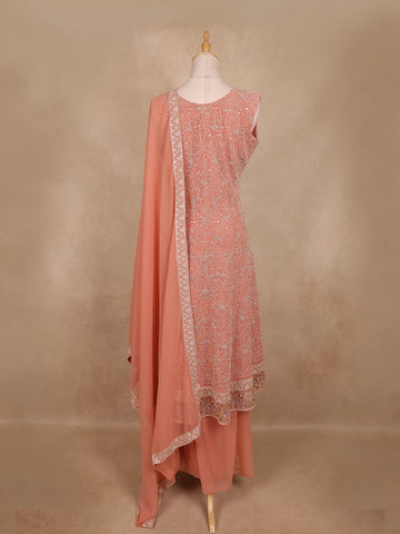 Peach Floral Sequins Embroidered Design Georgette Palazzo Suit