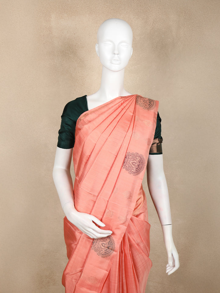 Peach Floral Woven Kanchipuram Silk Saree