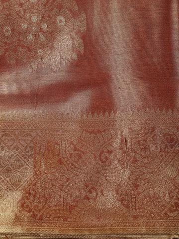 Peach Floral Zari Woven Design Tissue Silk Fancy Saree with Zari Border