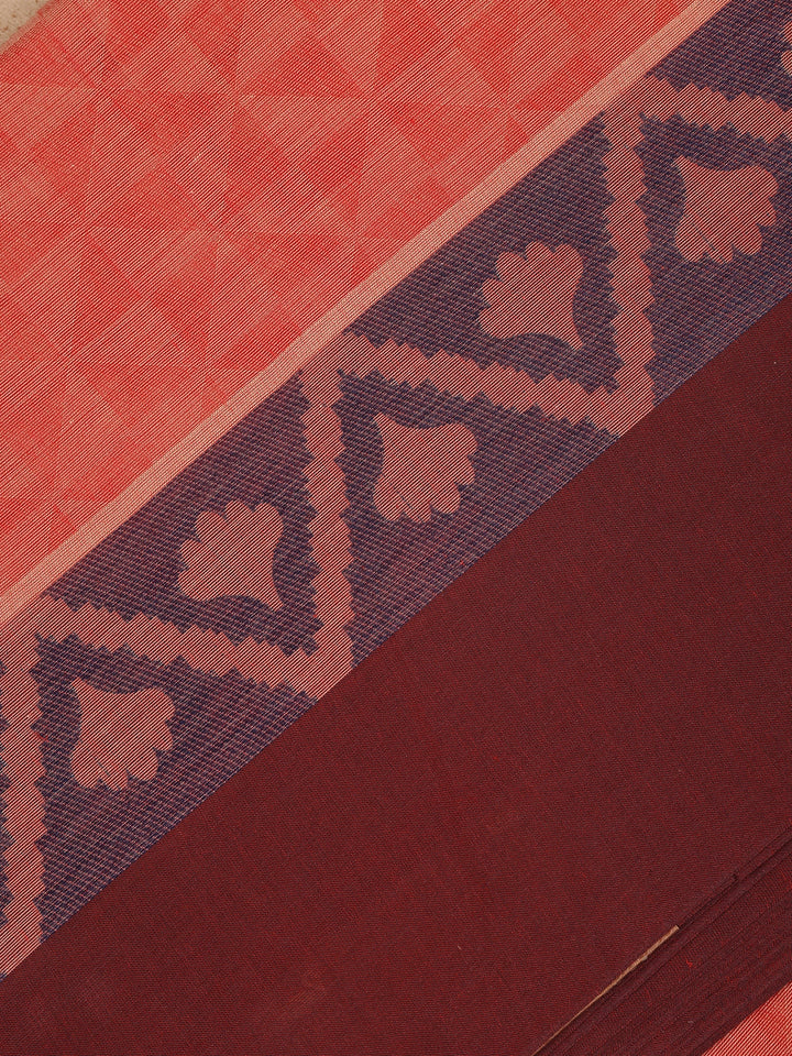 Peach Geometric Woven Design Cotton Saree