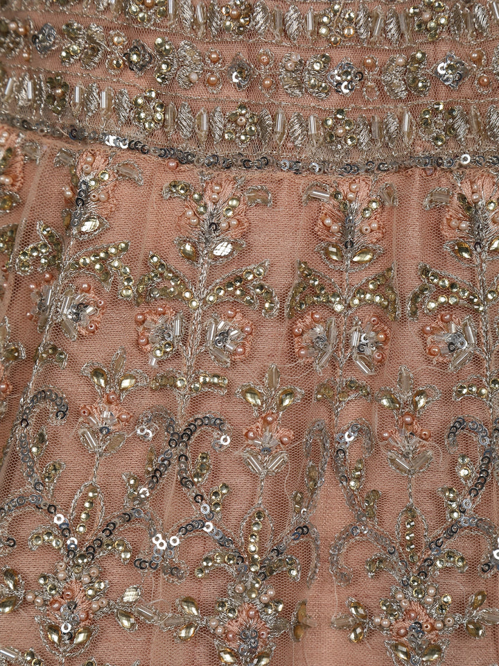 Peach Heavy Sequins Embroidered Net Lehenga With Sheer Dupatta