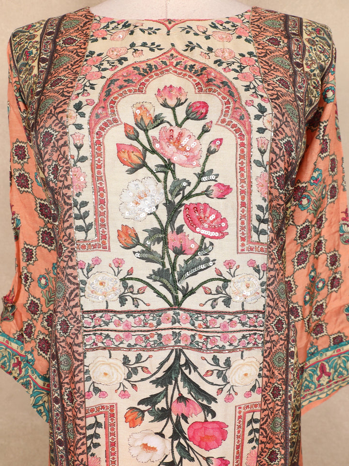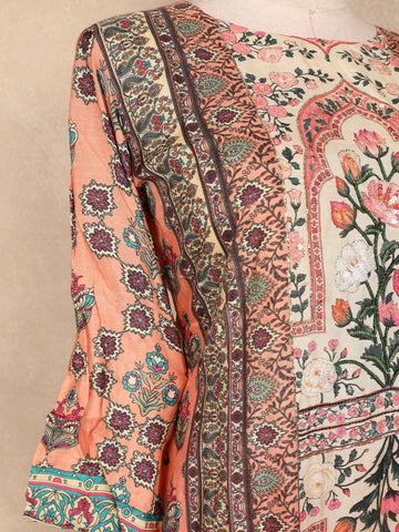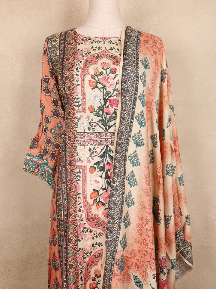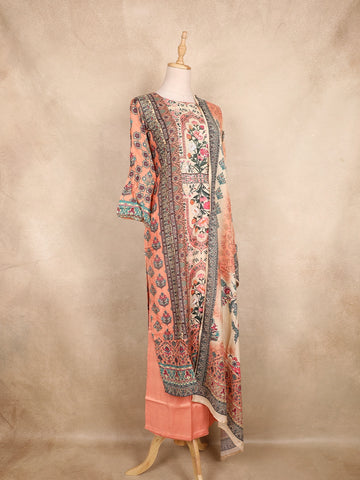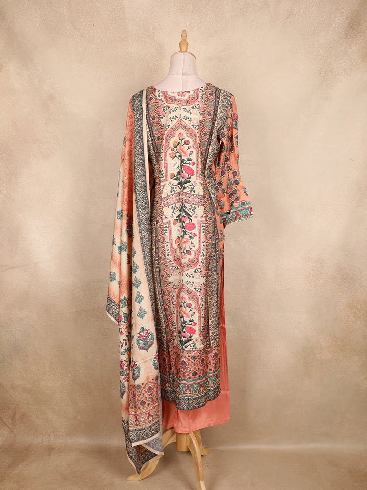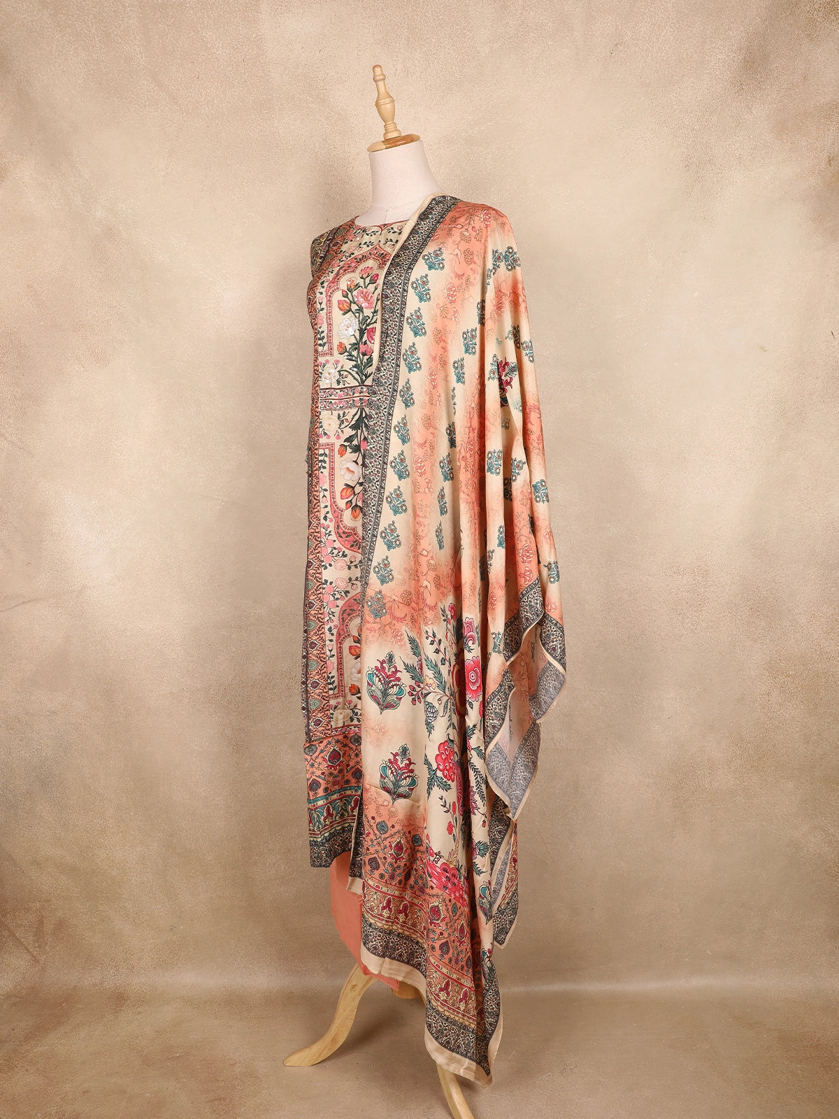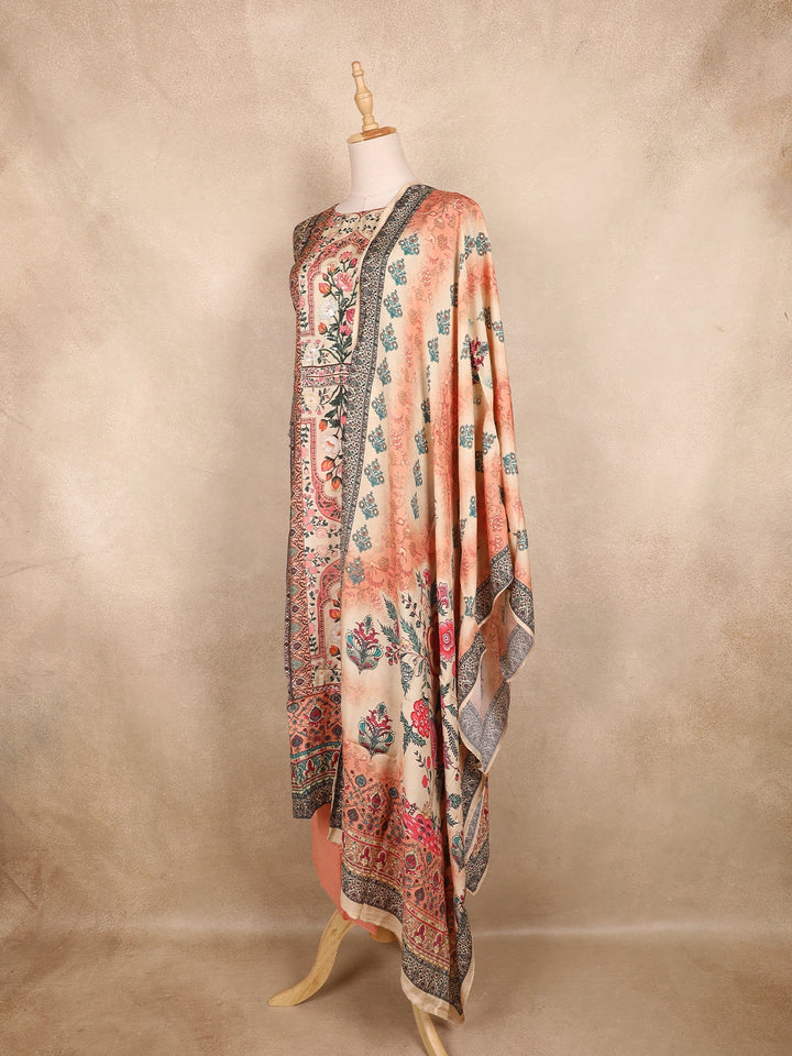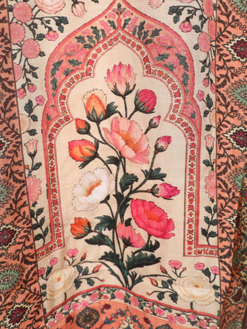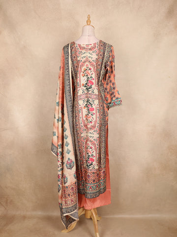Peach Kashmiri Floral Printed Design Crepe Straight Cut Salwar Suit with Dupatta