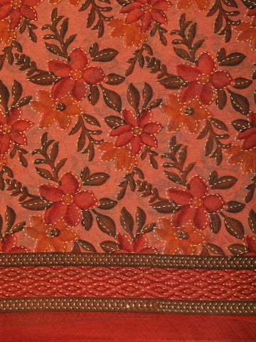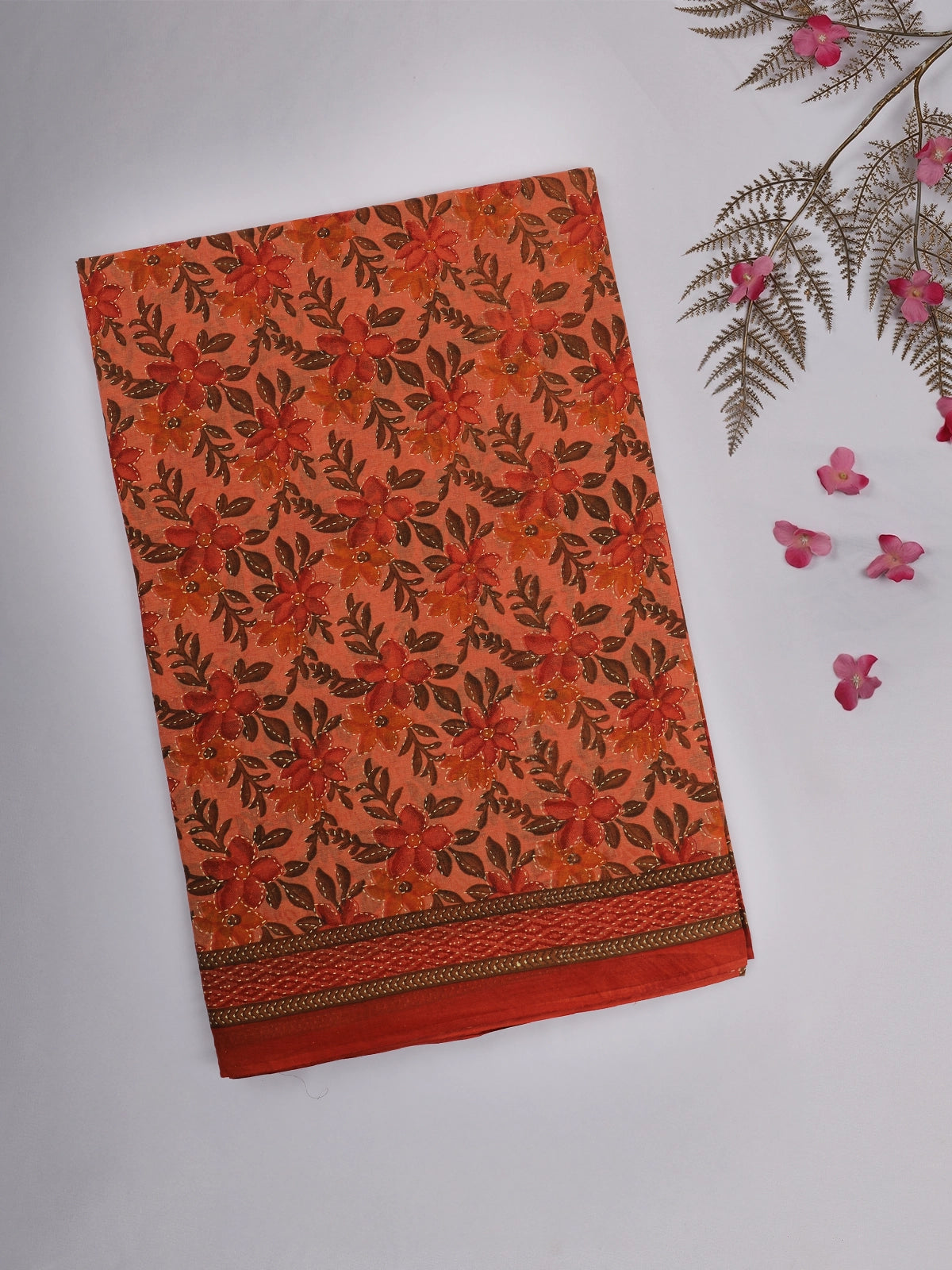 Peach Orange Floral Printed Design Karishma Cotton Saree