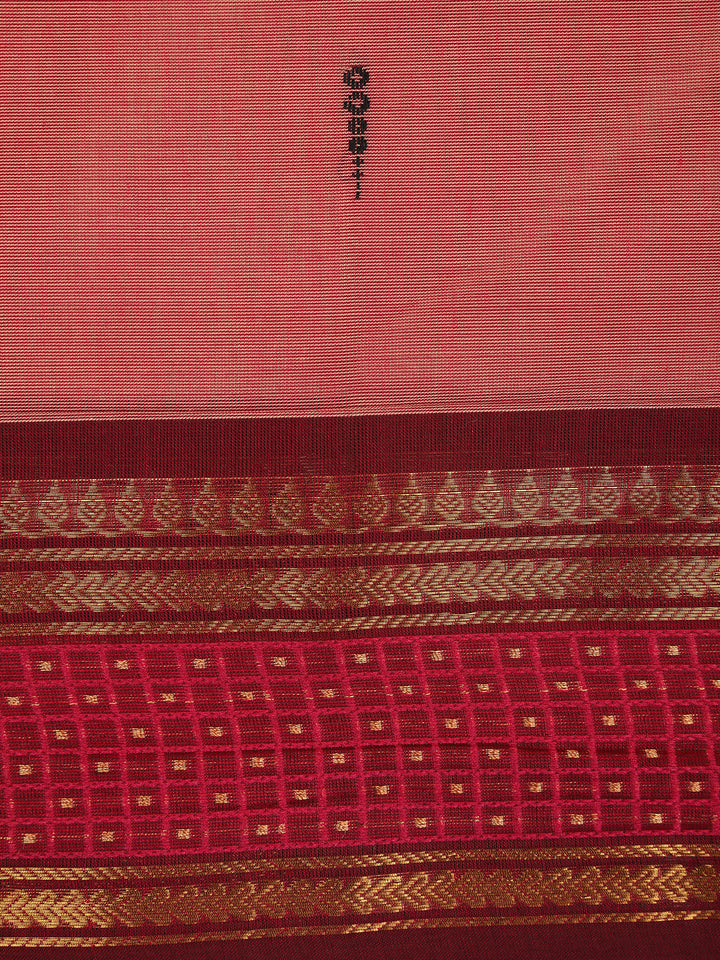Peach Pink Butta Woven Design Cotton Saree with Contrast Zari Border