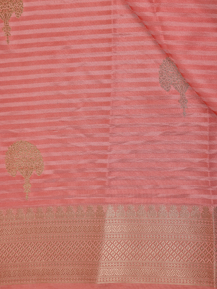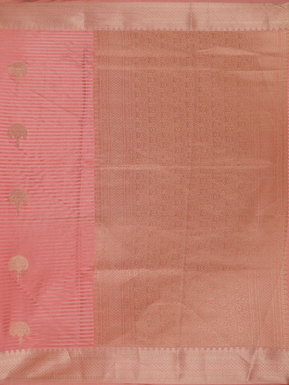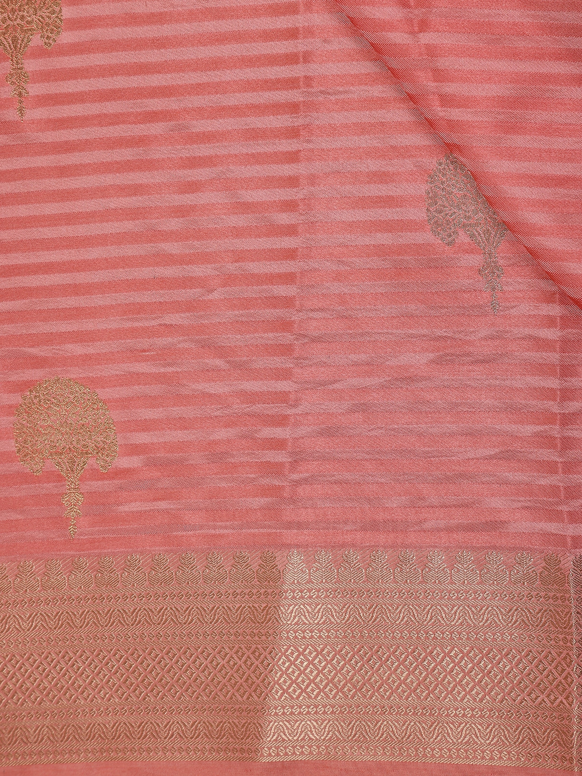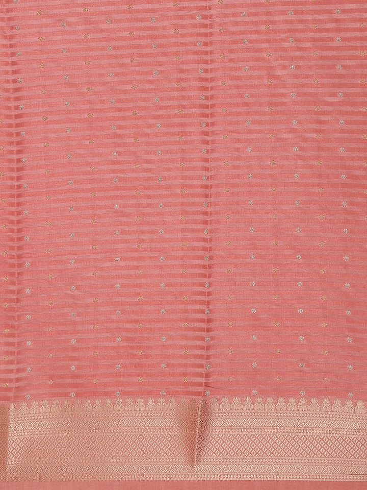 Peach Pink Butta Woven Design Semi Banarasi Saree wit Zari Border