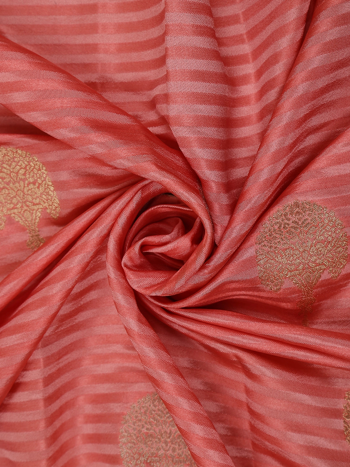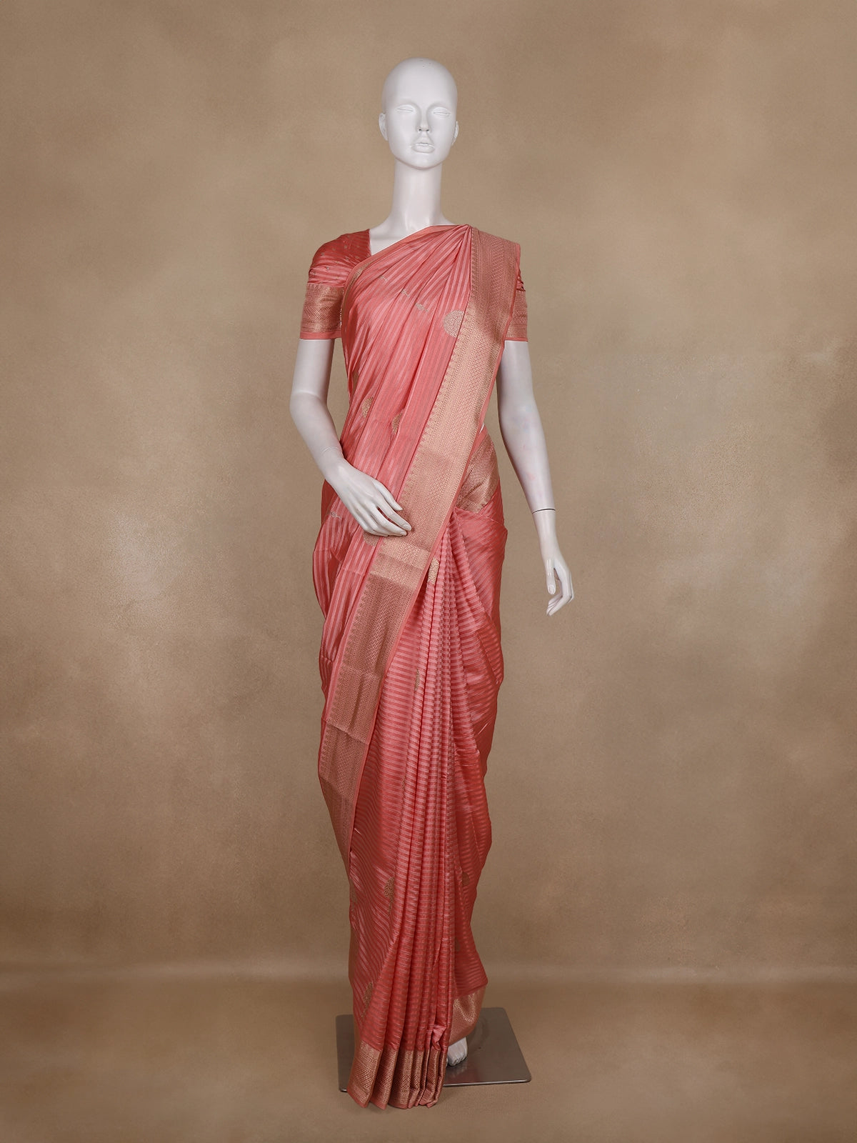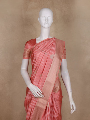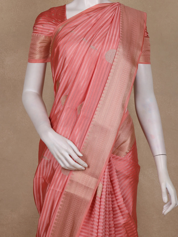 Peach Pink Butta Woven Design Semi Banarasi Saree wit Zari Border