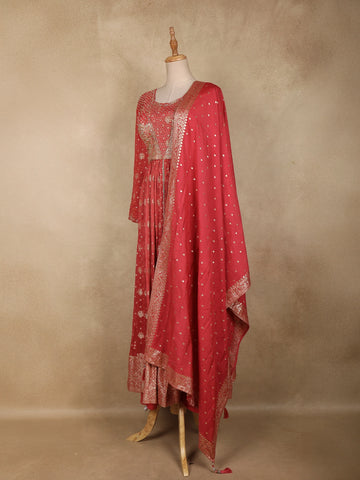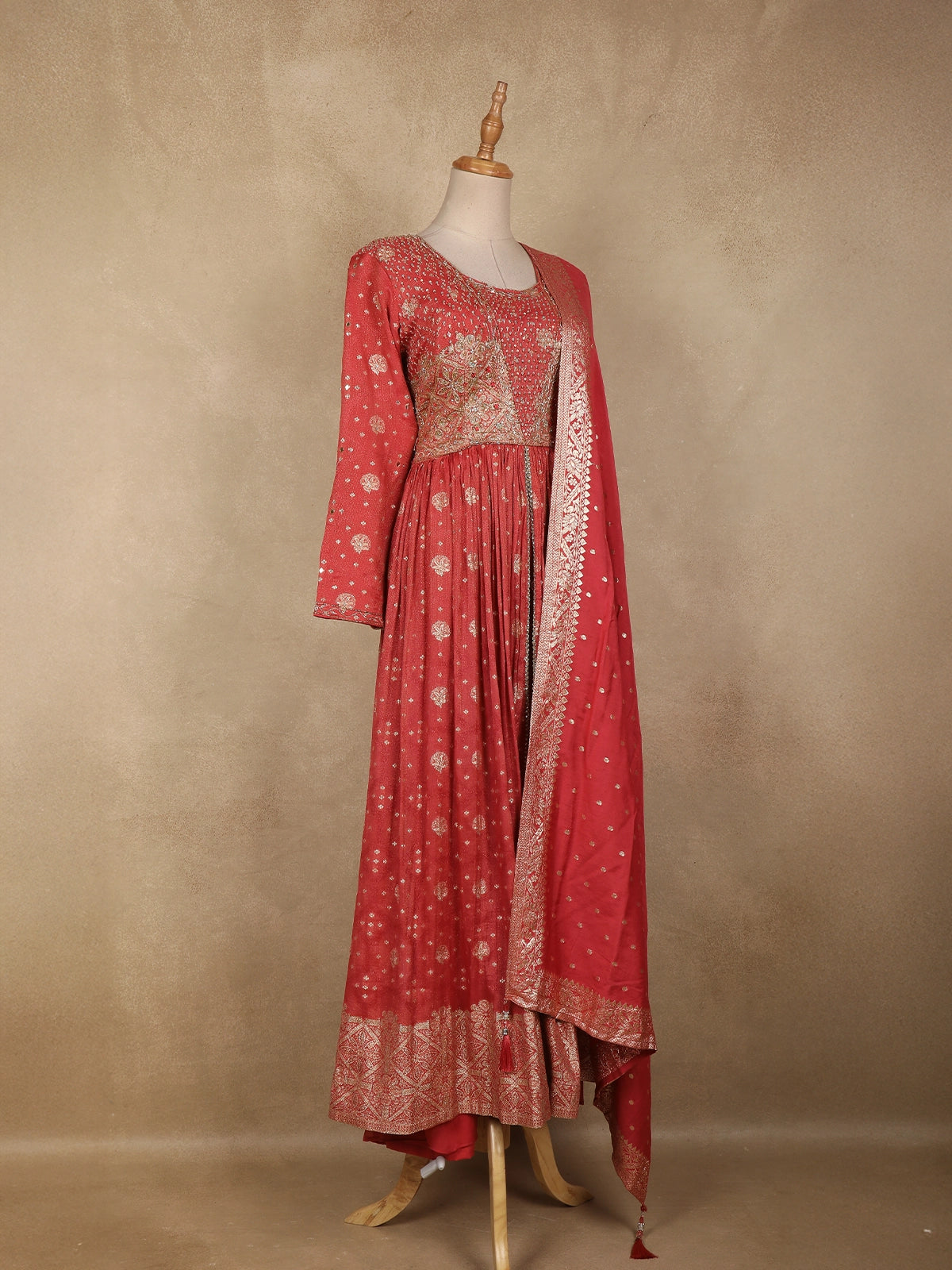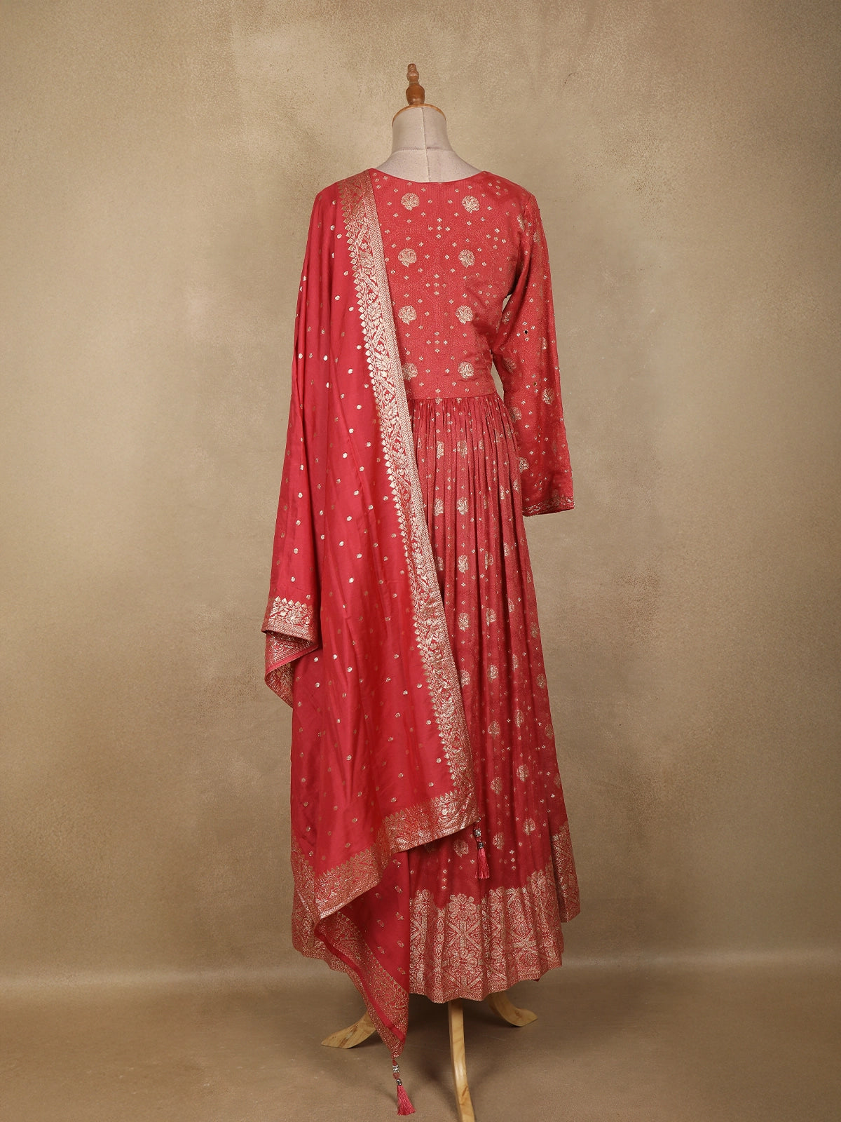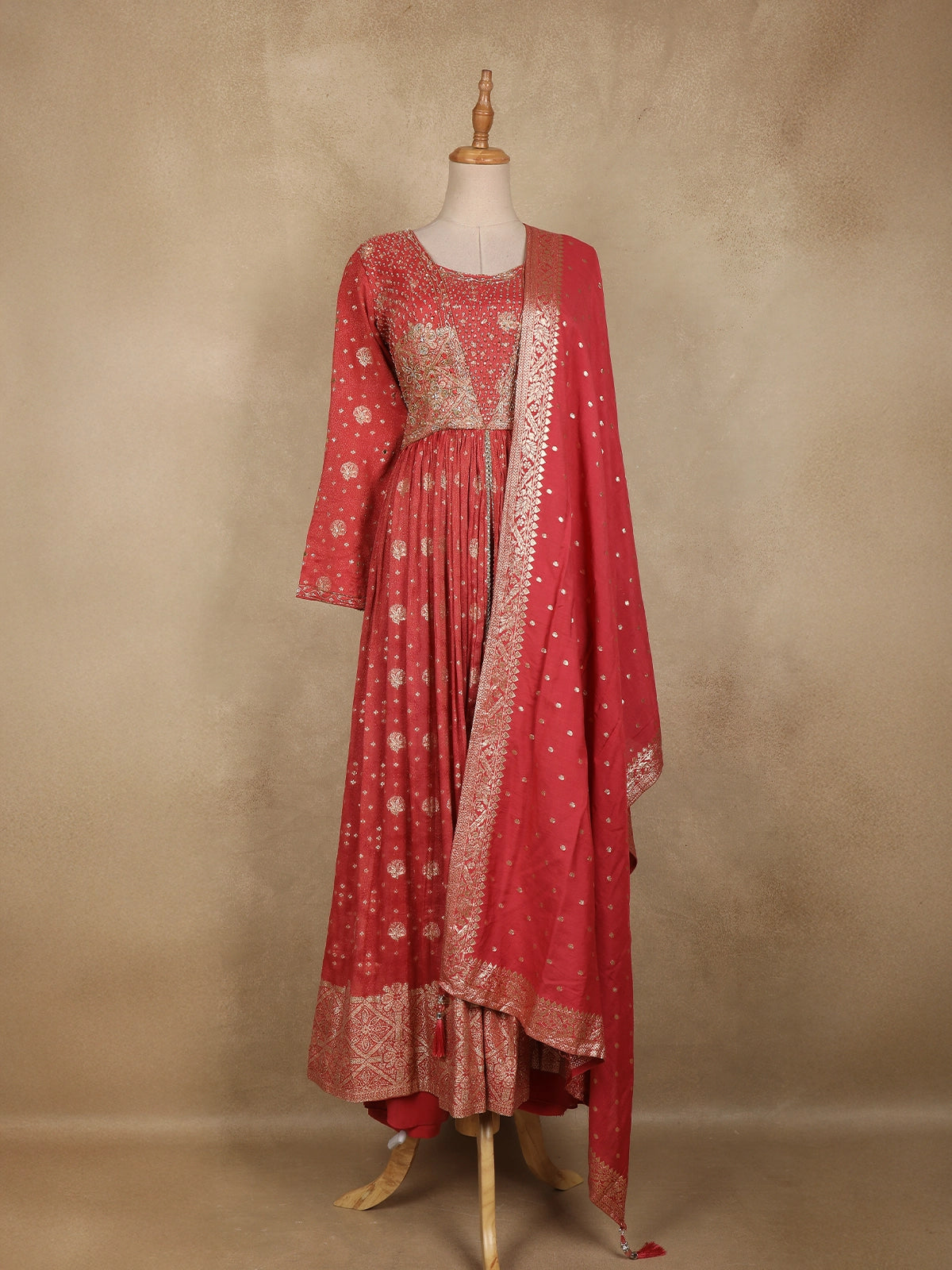 Peach Pink Butta Zari Design Banarasi Silk Palazzo Suit