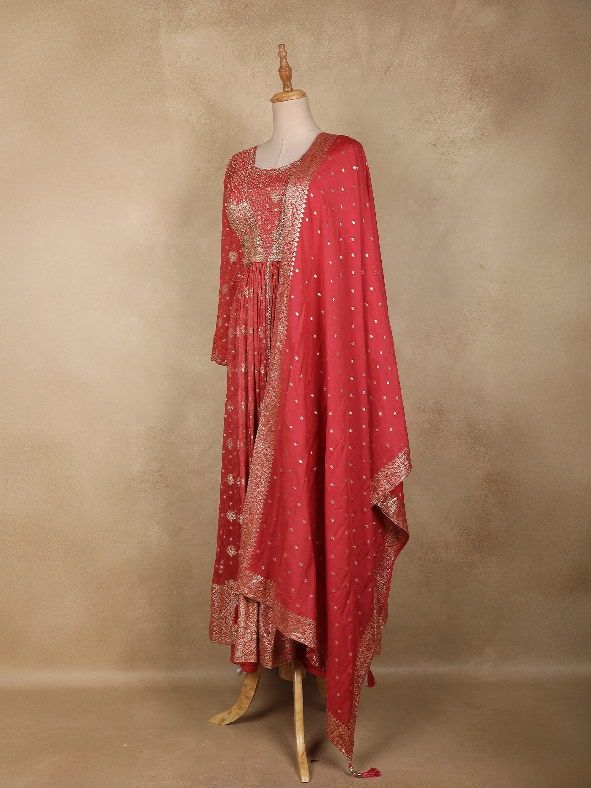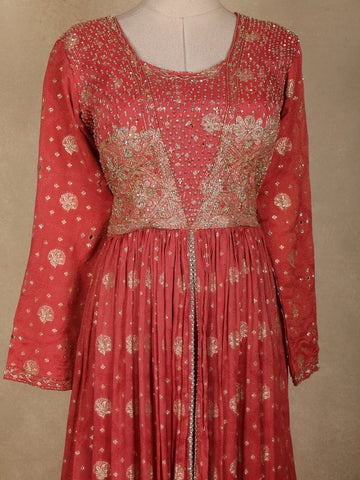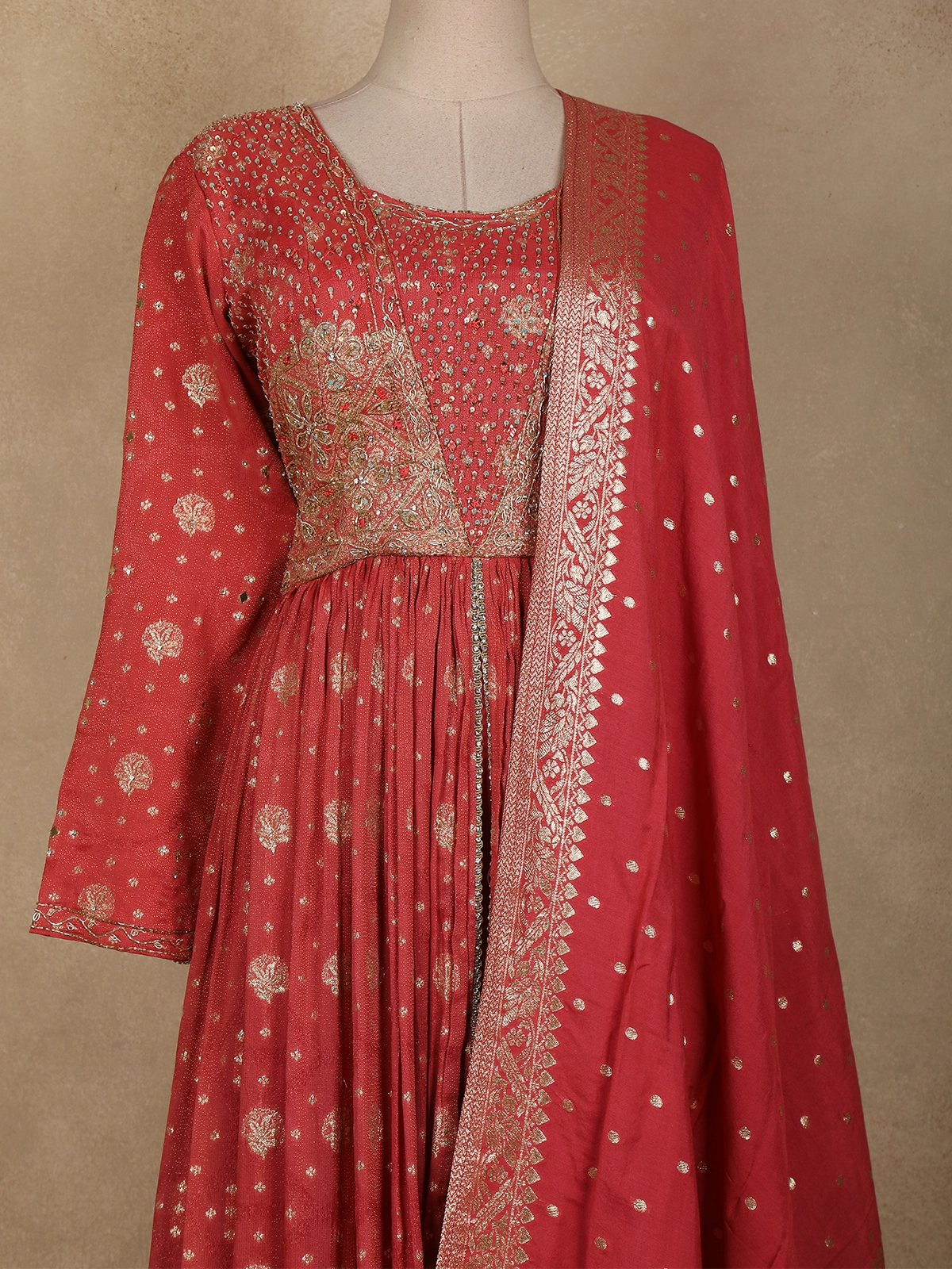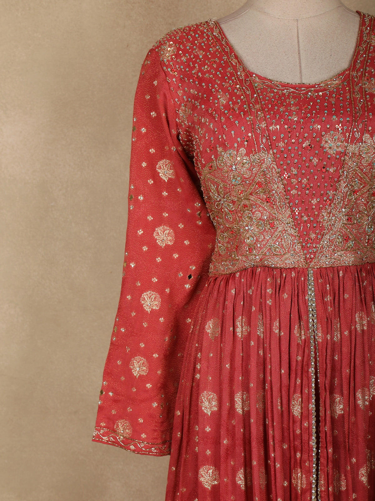 Peach Pink Butta Zari Design Banarasi Silk Palazzo Suit
