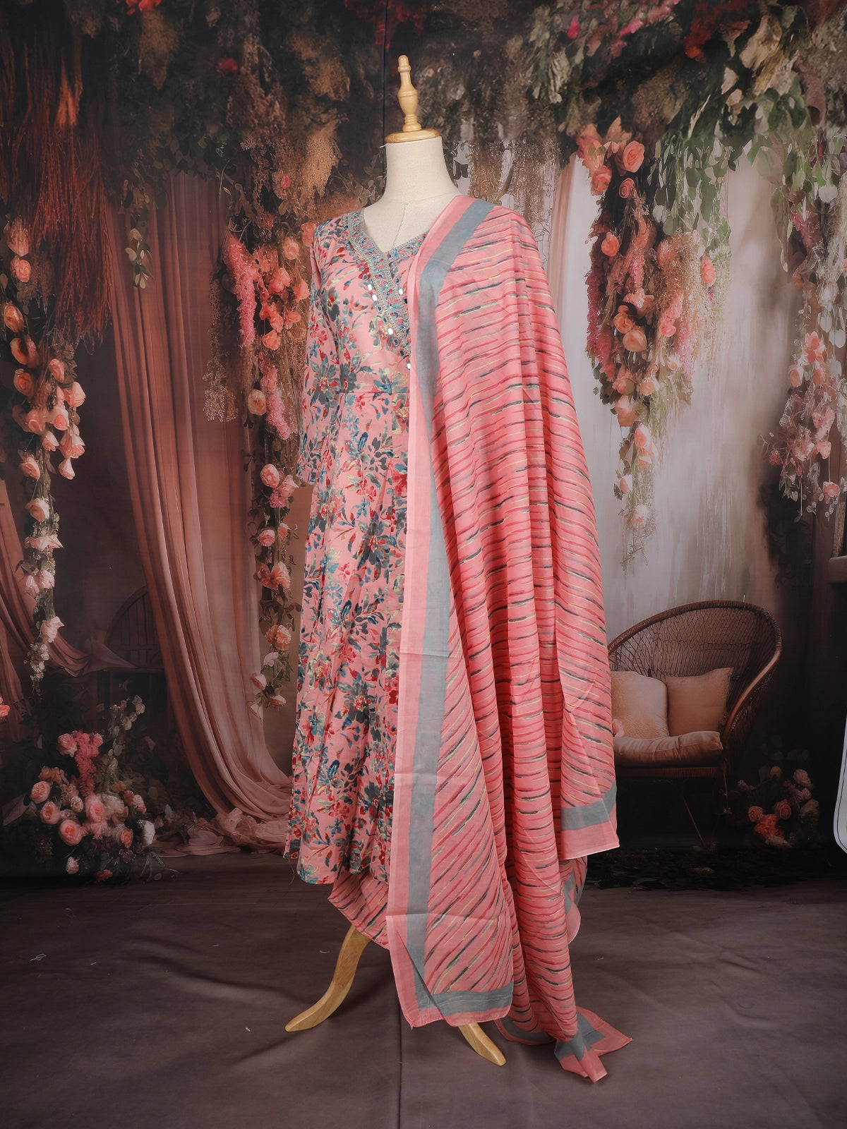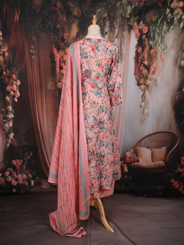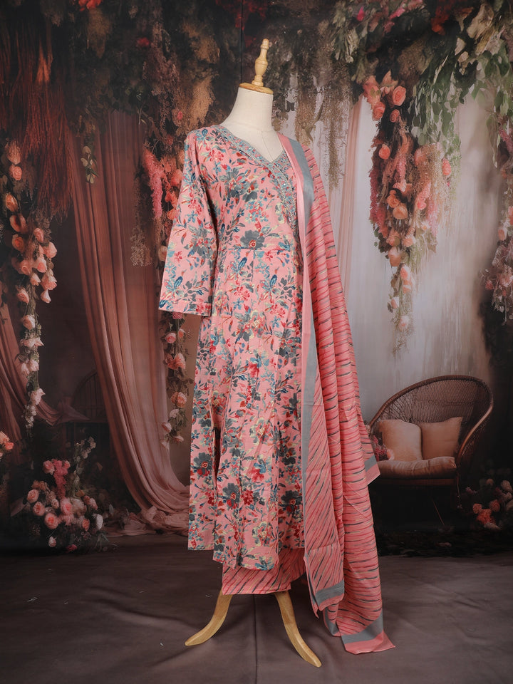 Peach Pink Floral Printed Cotton Salwar Suit with Dupatta