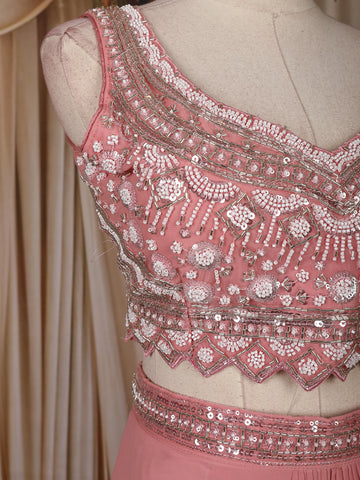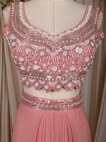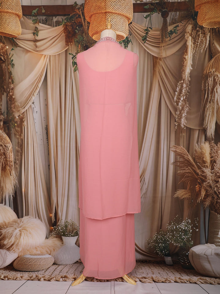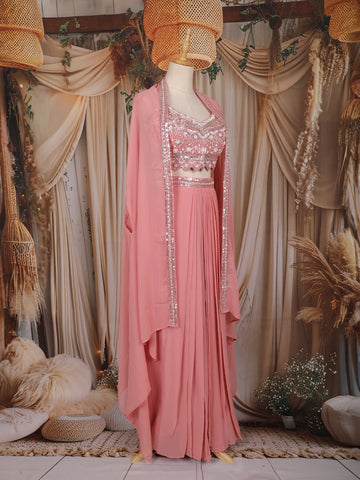 Peach Pink Mirror Embroidered Design Georgette Skirt Top with Cape Jacket