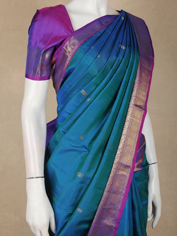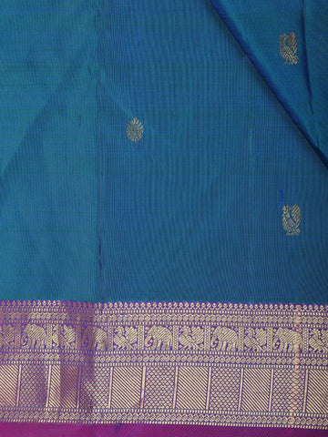 Peacock Blue Butta Woven Design Pure Kanchipuram Silk Saree with Contrast Royal Purple Border
