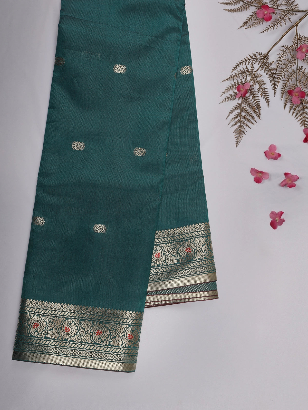 Peacock Blue Butta Woven Soft Silk Saree with Zari Border