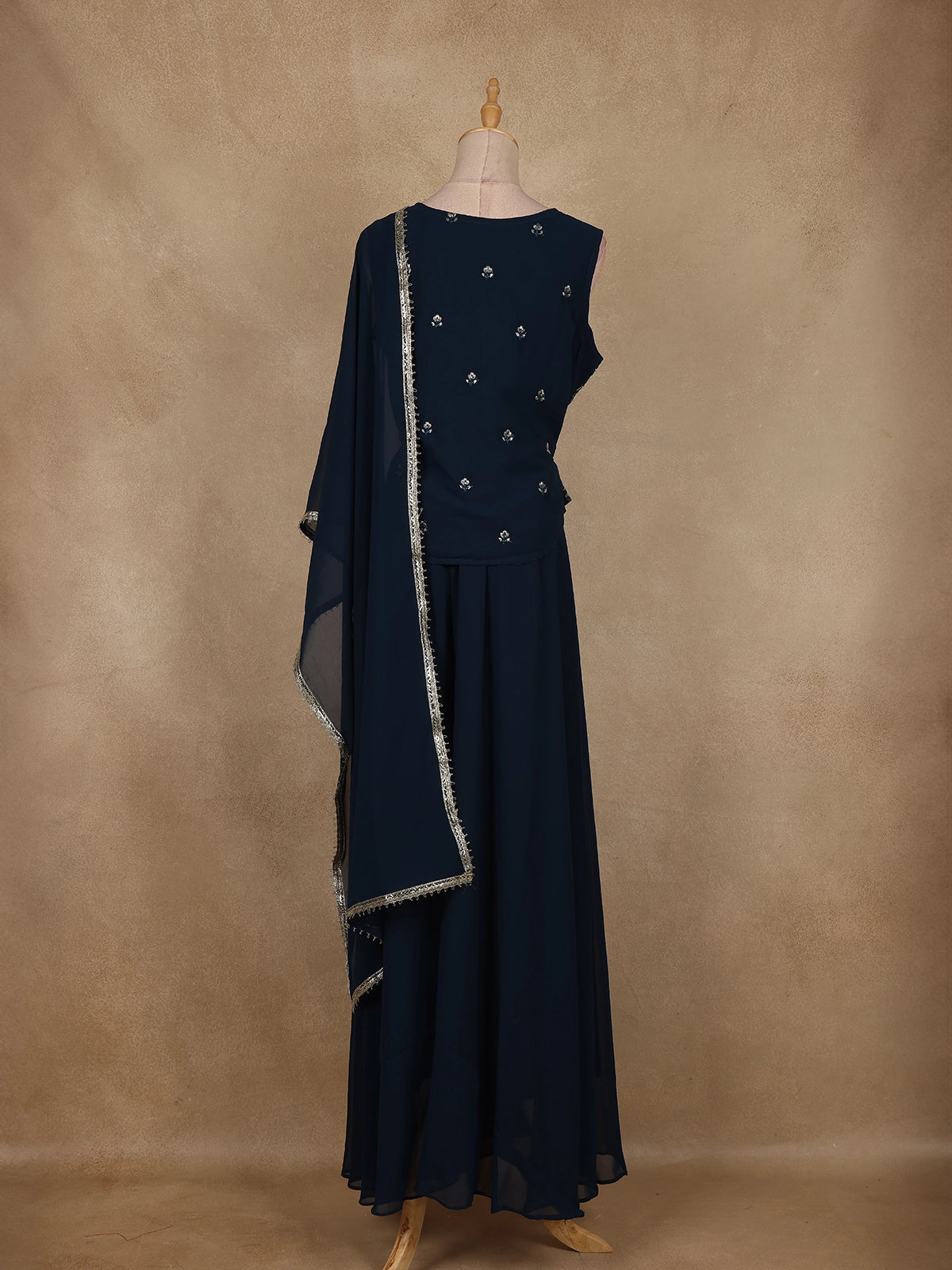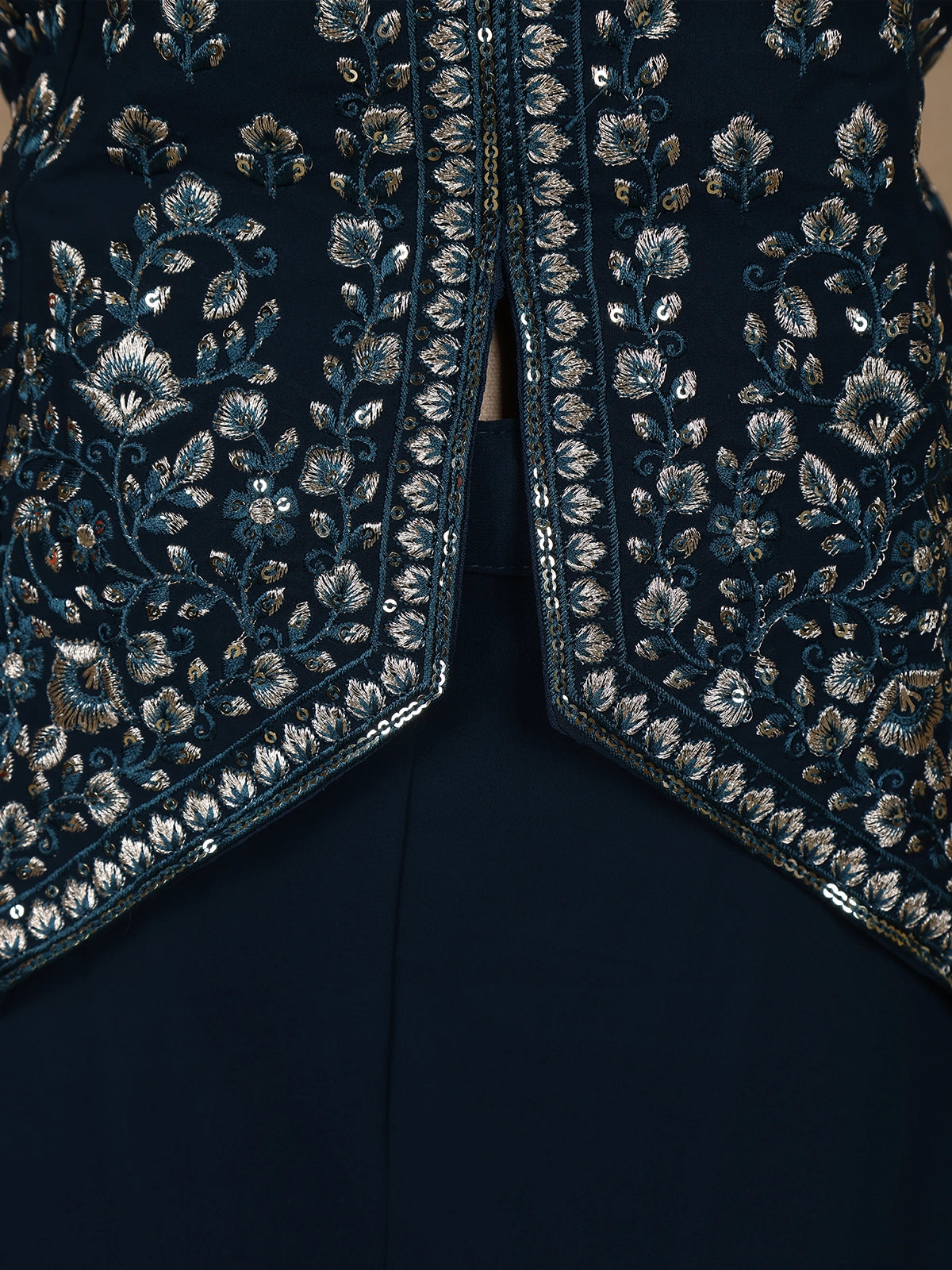 Peacock Blue Floral Embroidered Georgette Palazzo Suit