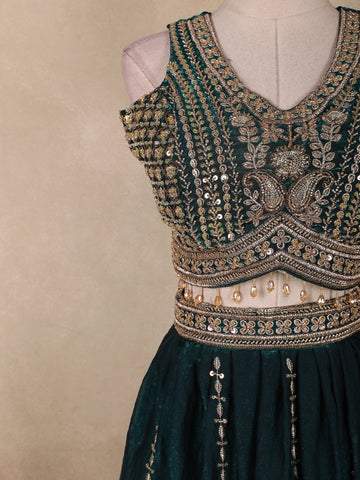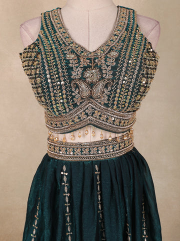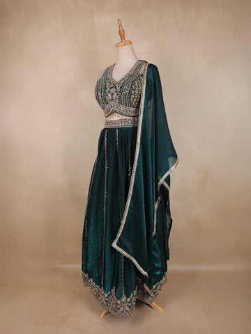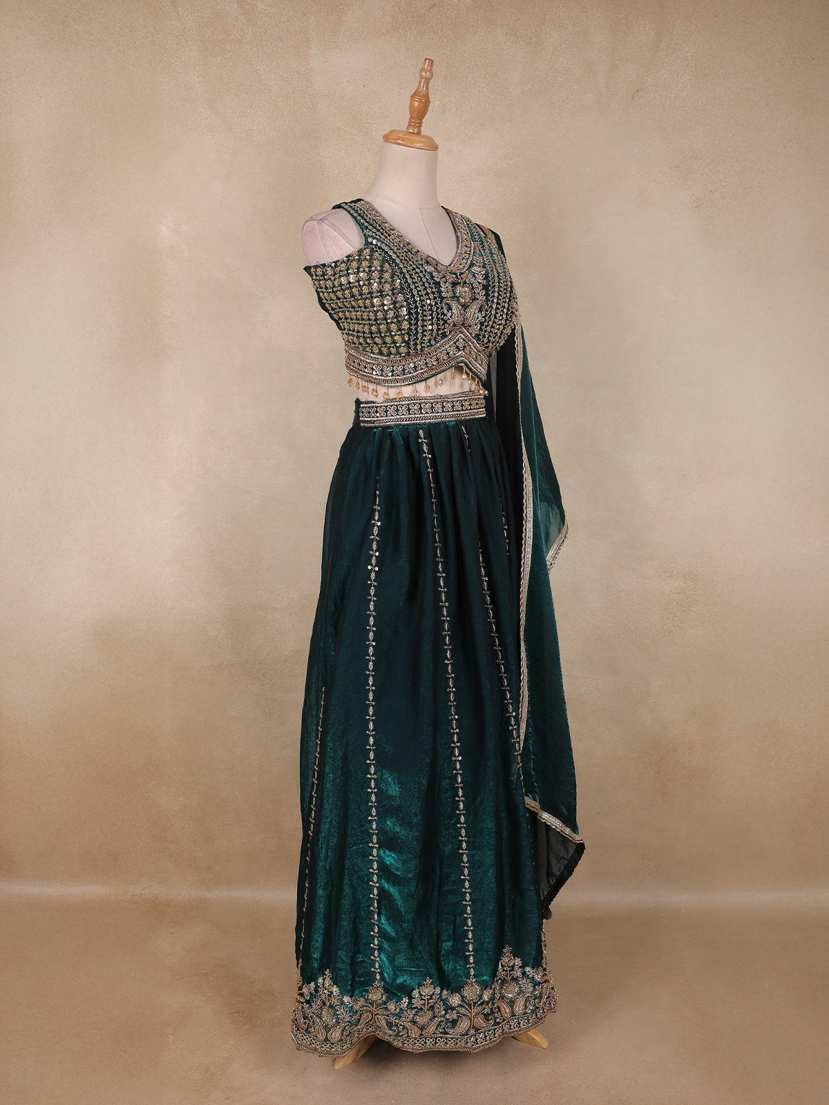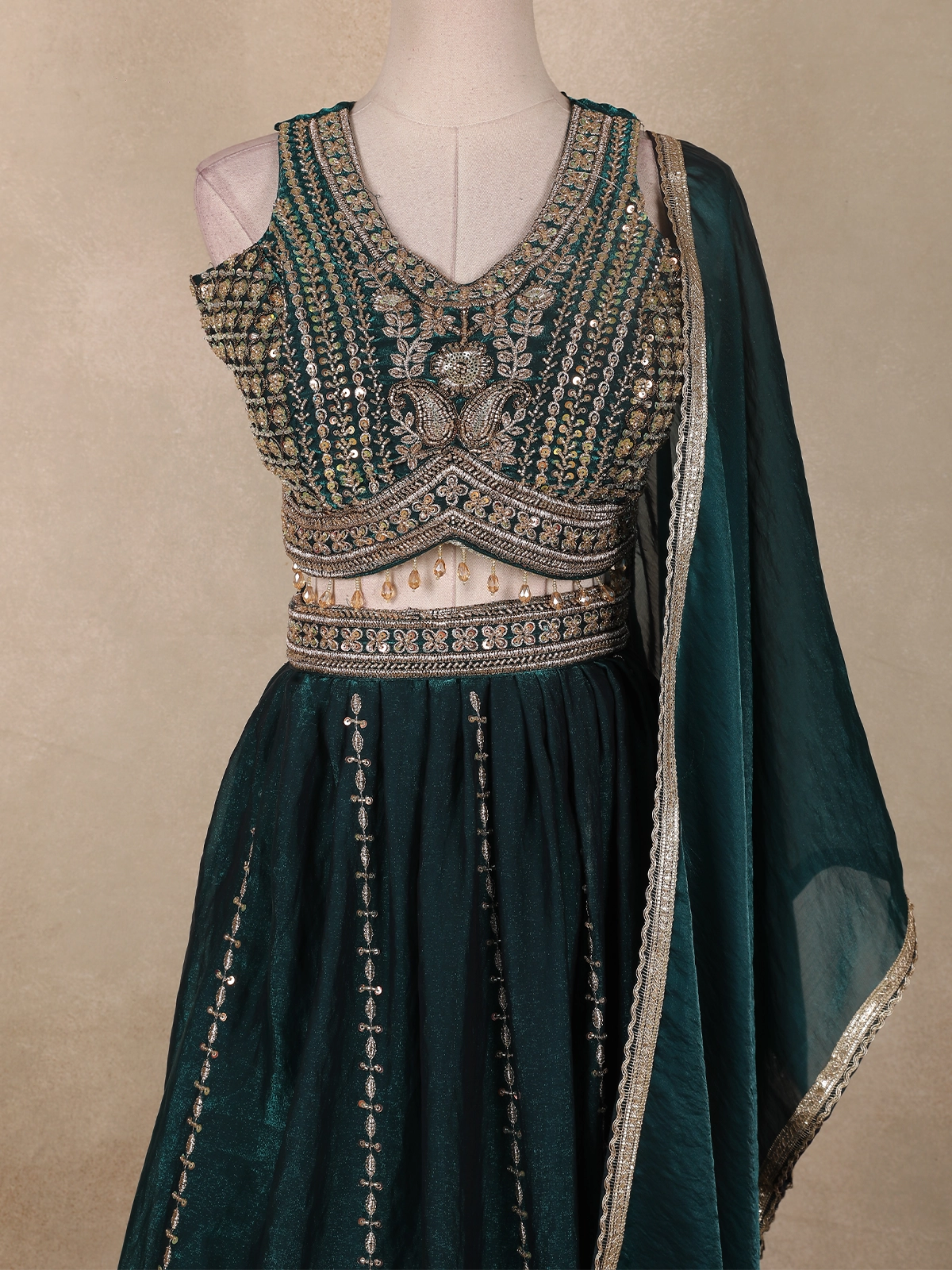 Peacock Blue Floral Sequins and Beads Embroidered Design Organza Bridesmaid Lehenga