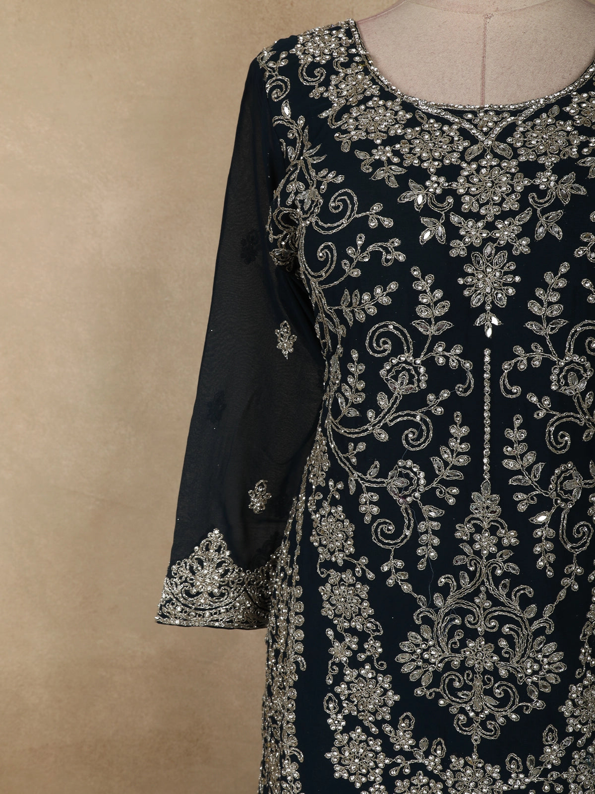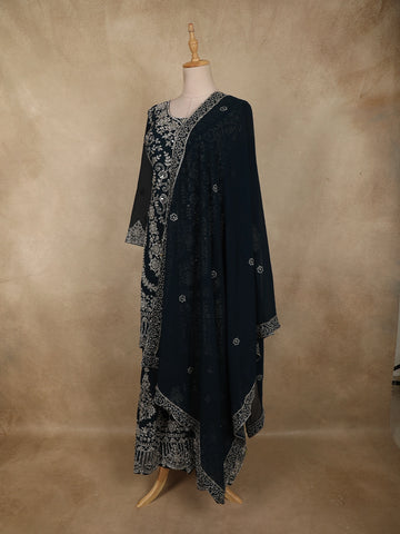 Peacock Blue Floral Zari Embroidered Design Georgette Palazzo Suit with Dupatta