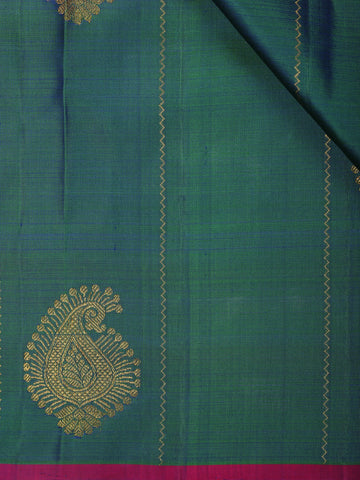 Peacock Blue Paisley Butta Woven Design Pure Kanchipuram Silk Saree with Contrast Blouse