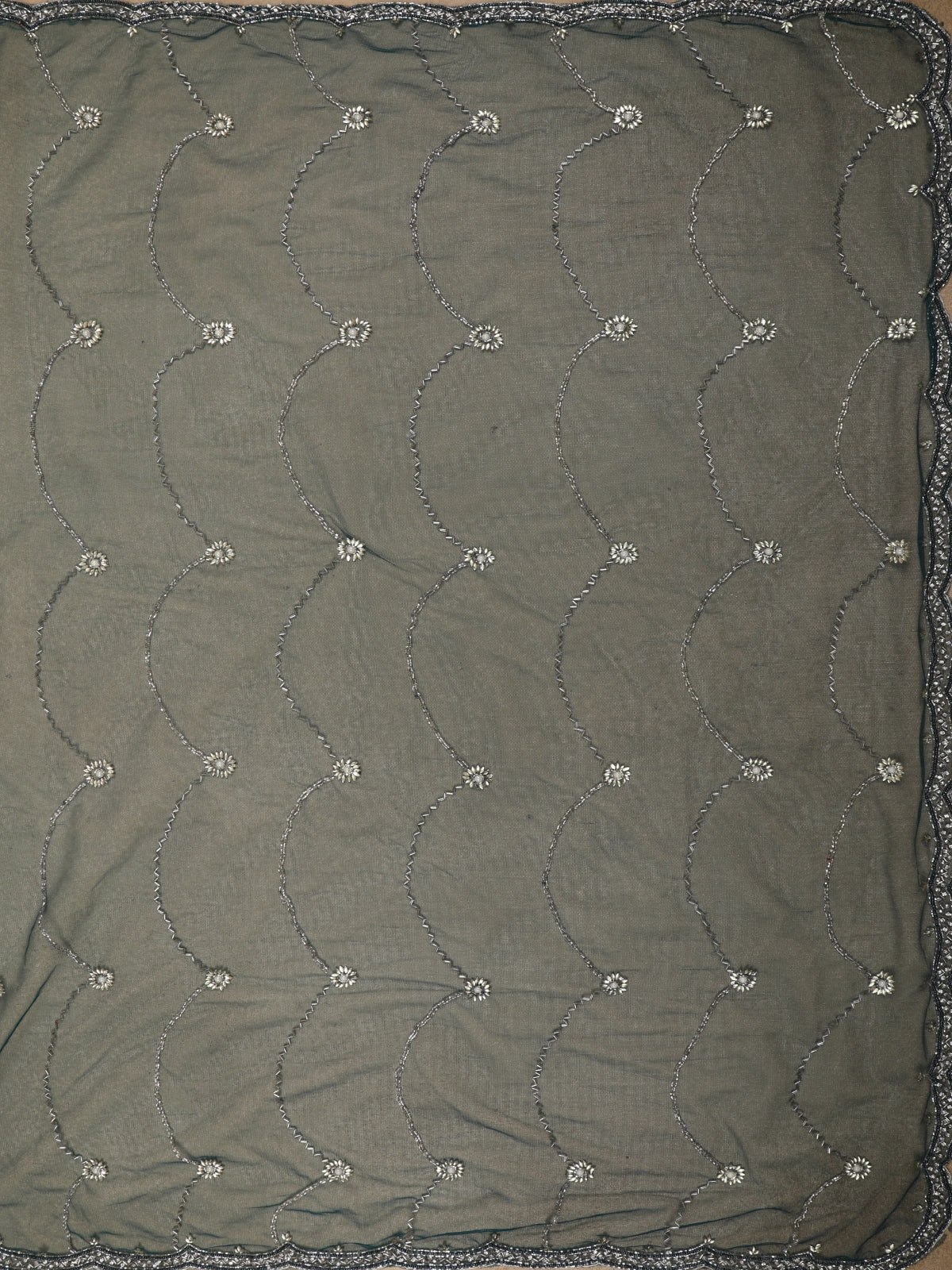 Paired with a matching blouse featuring coordinated embroidery on the sleeves, this saree is perfect for cocktail evenings, receptions, festive celebrations, and elegant party occasions. Designed for those who appreciate understated sparkle and fluid drapes, this designer saree offers a flawless balance of sophistication and glamour.
