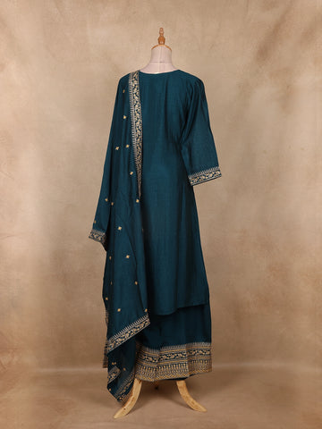 Peacock Green Embroidered Silk Palazzo Suit with Dupatta
