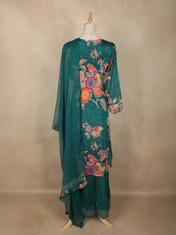 Peacock Green Floral Printed Cotton Crepe Salwar Suit with Dupatta