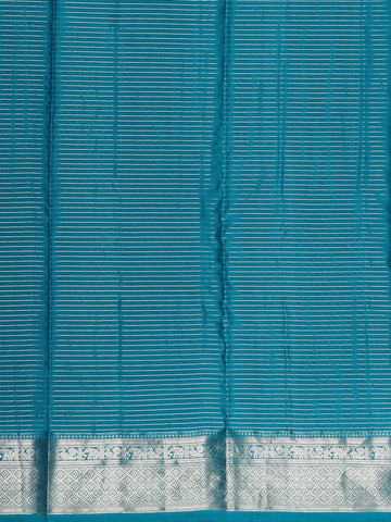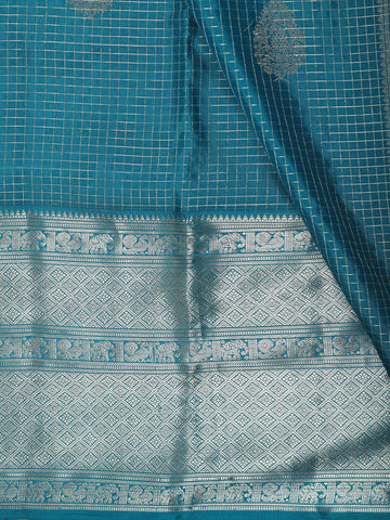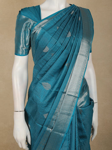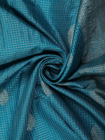 Peacock Teal Blue Checked Zari Woven Design Pure Kanchipuram Silk Saree with Zari Border