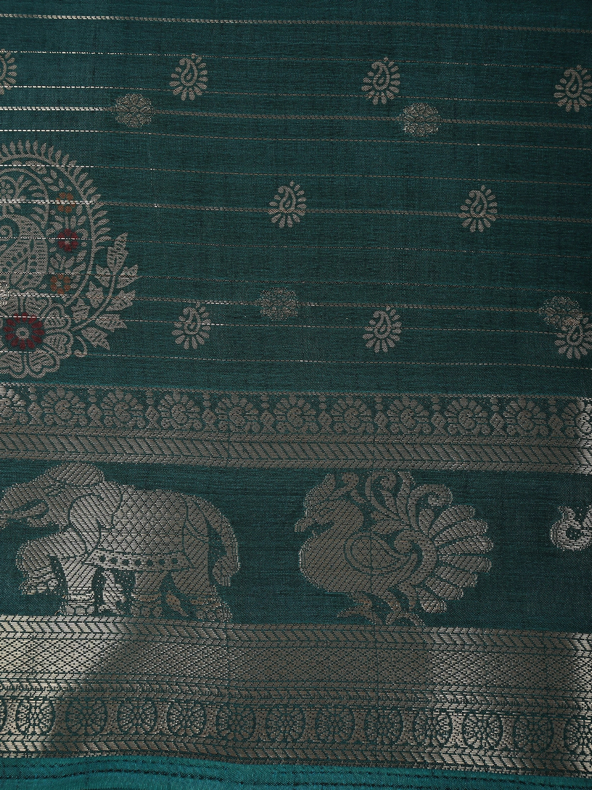 Peacock Teal Blue Paisley Butta Woven Design Semi Silk Saree with Animal Motif Border