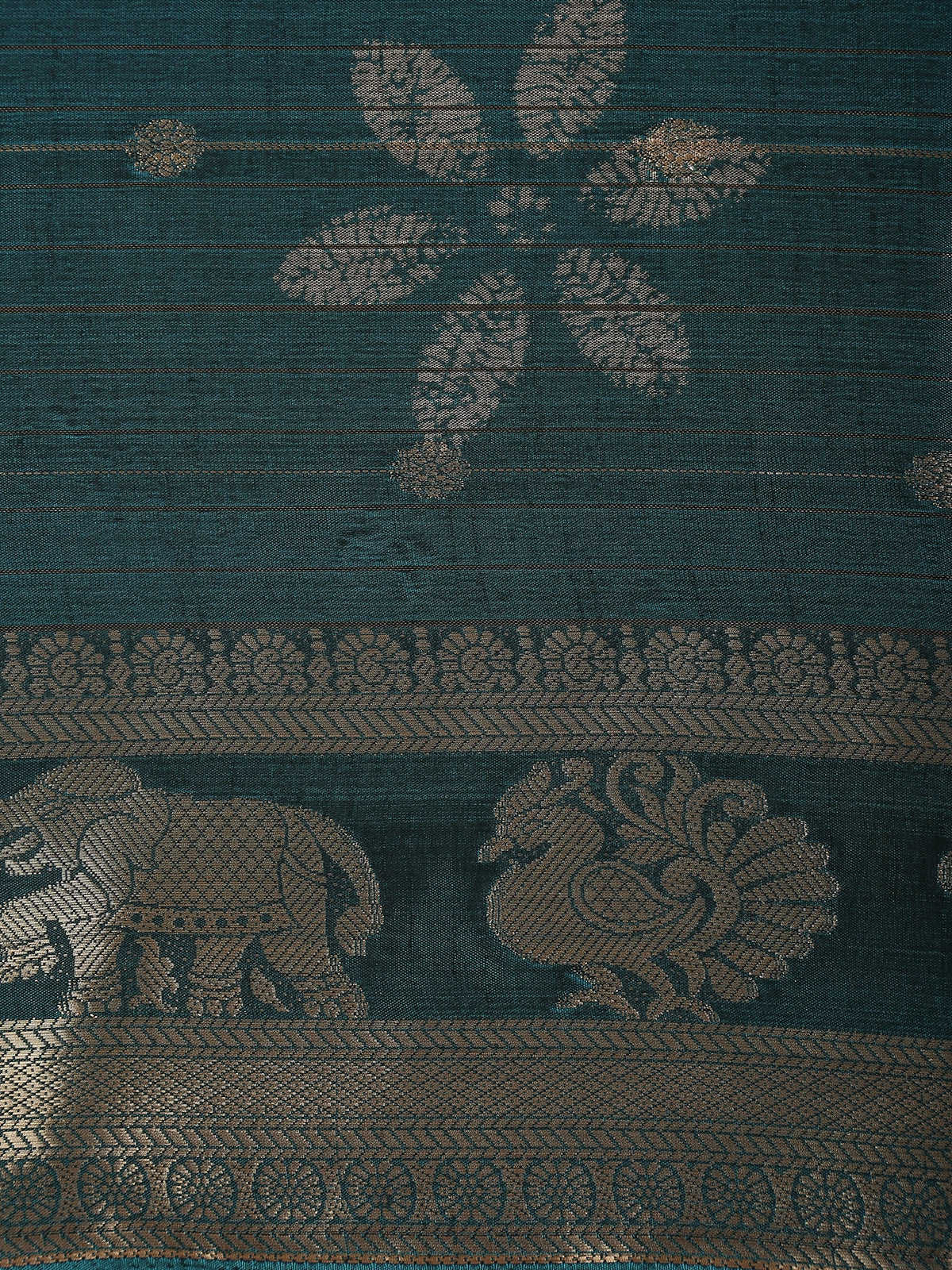Peacock Teal Blue Paisley Butta Woven Design Semi Silk Saree with Animal Motif Border