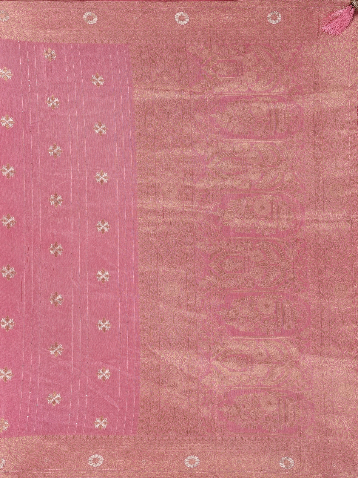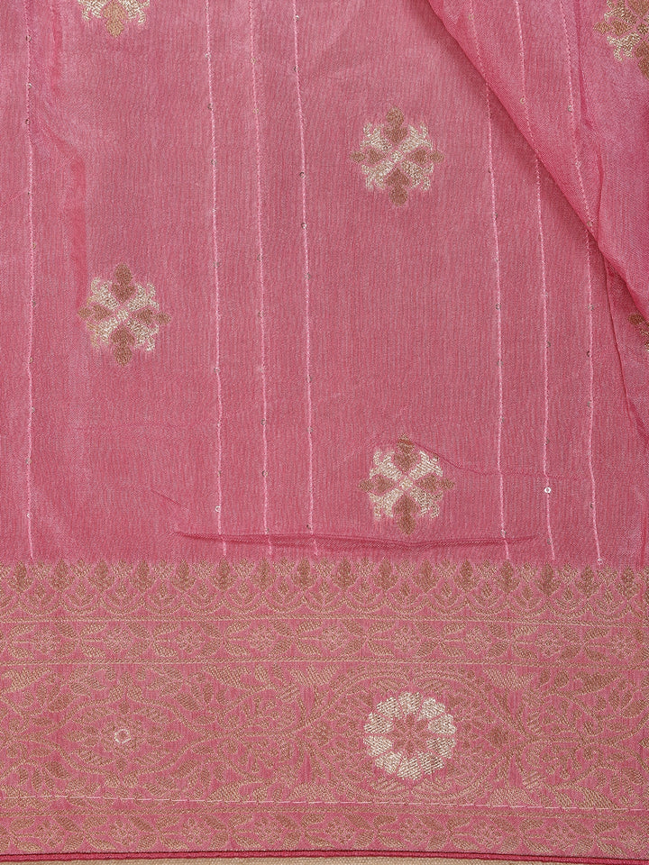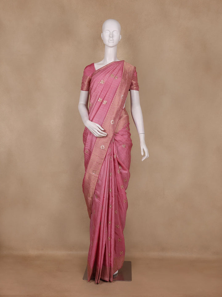 Drape yourself in radiant tradition with this elegant Pink Banarasi Silk Saree, a timeless creation that reflects the richness of Indian craftsmanship. Woven from luxurious Banarasi silk, it carries a natural sheen and smooth texture, making it an ideal choice for festive occasions and grand celebrations.