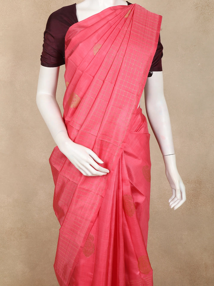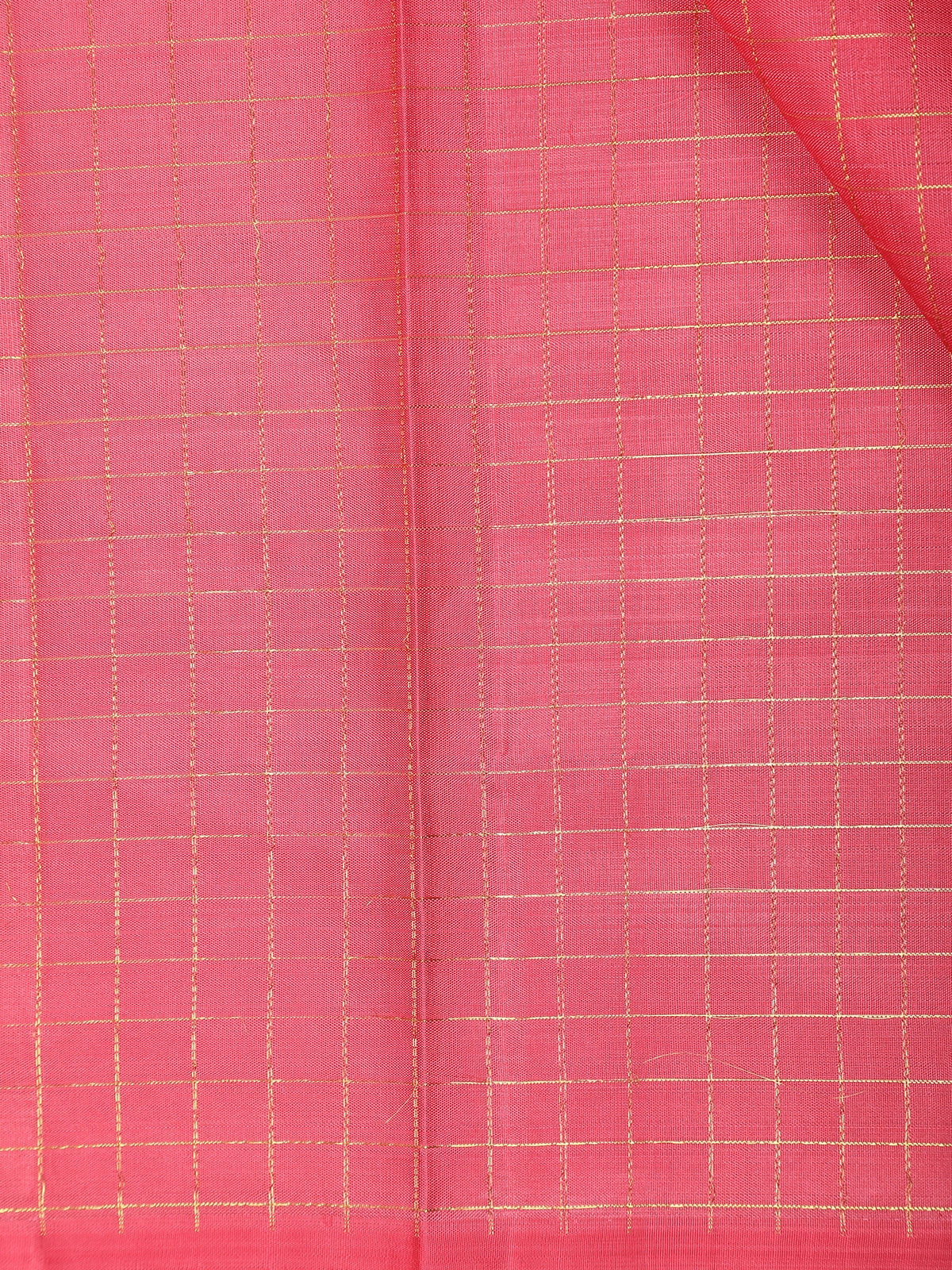 Pink Checked Zari Woven Pure Kanchipuram Silk Saree