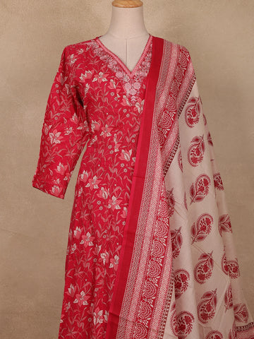 Pink Floral Design Cotton Salwar Suit with Dupatta