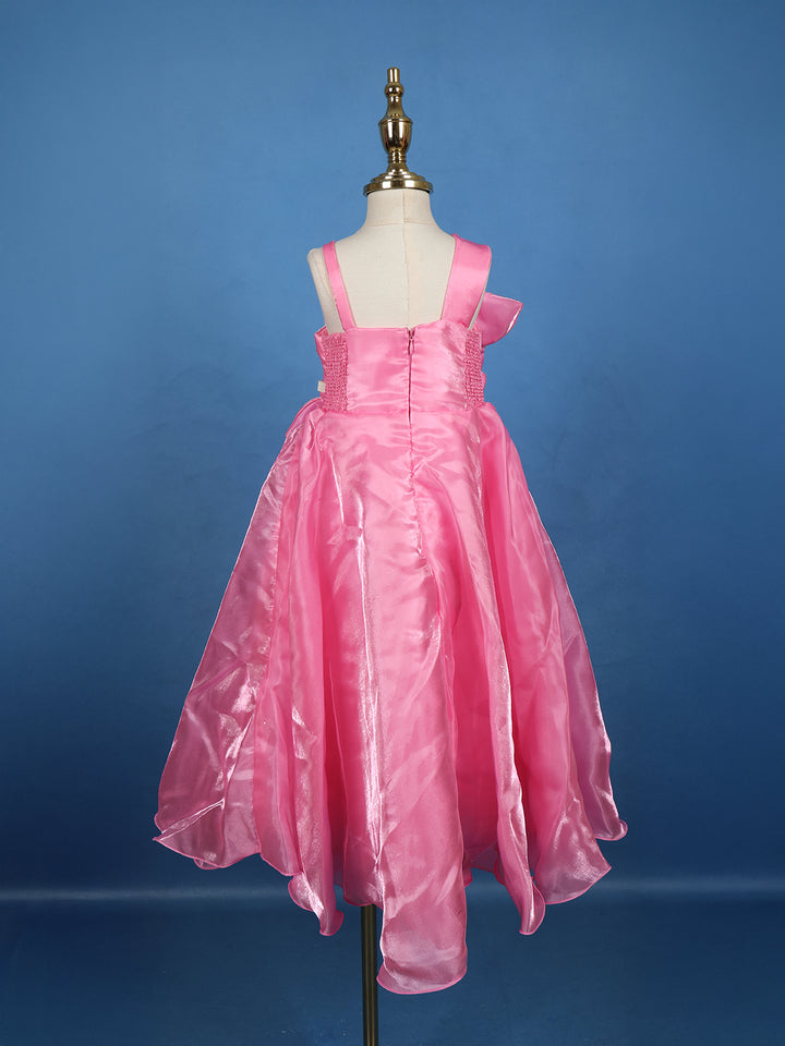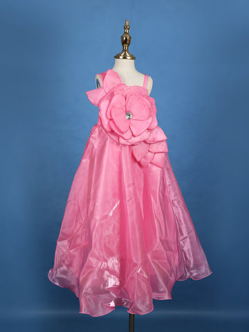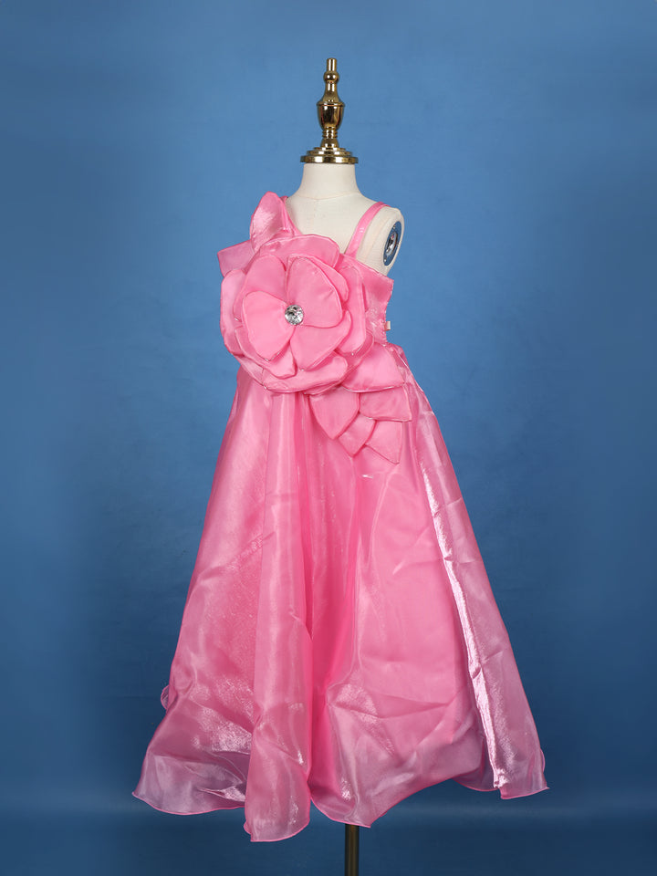 Pink Floral Design Satin Party Wear Frock