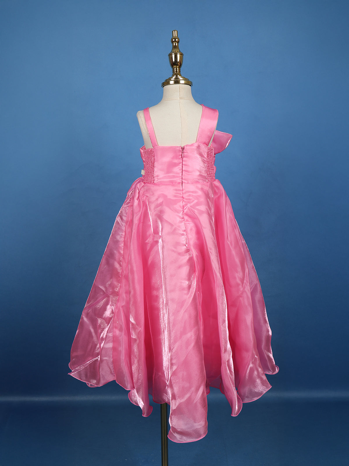 Dress your little one in pure elegance with this Pink Floral Design Satin Party Frock, crafted to make every moment picture-perfect. The soft satin fabric flows gracefully, offering a glossy finish that catches the light with every twirl.
