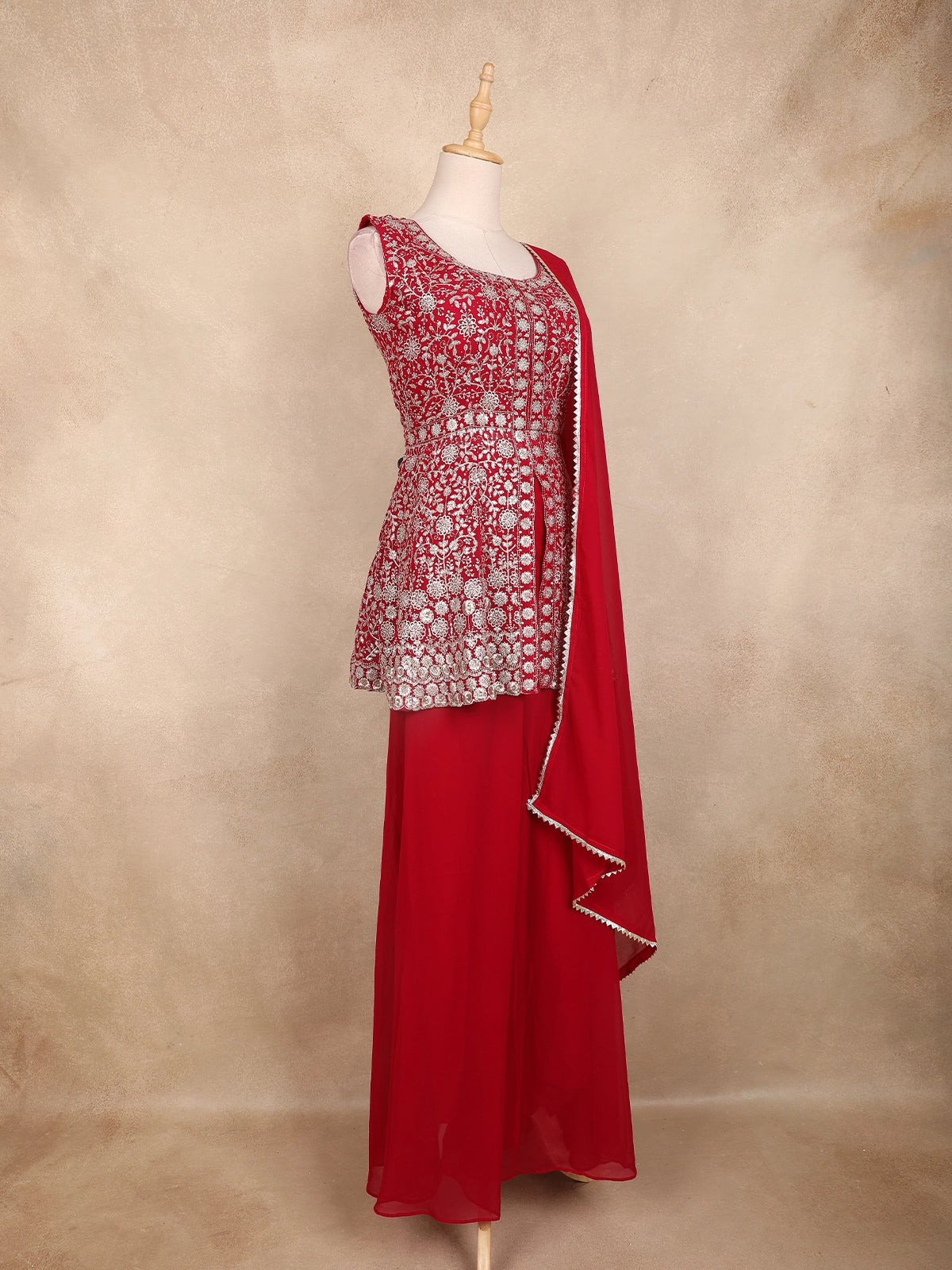 Pink Floral Embroidered Georgette Peplum Palazzo Suit with Dupatta