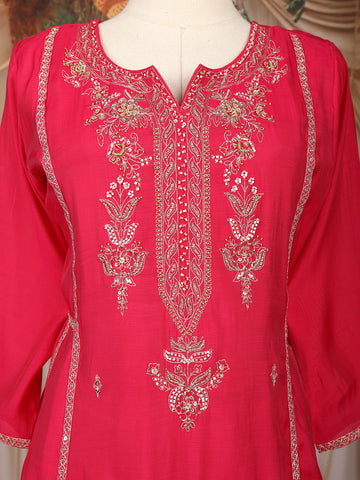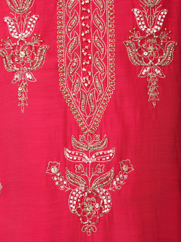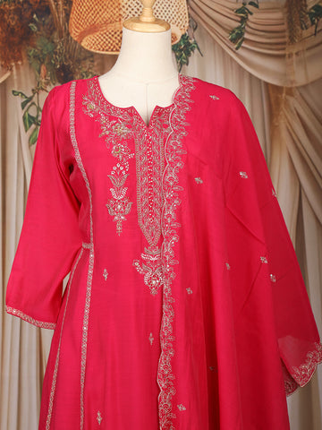 Pink Floral Embroidered Raw Silk Salwar Suit with Matching Dupatta