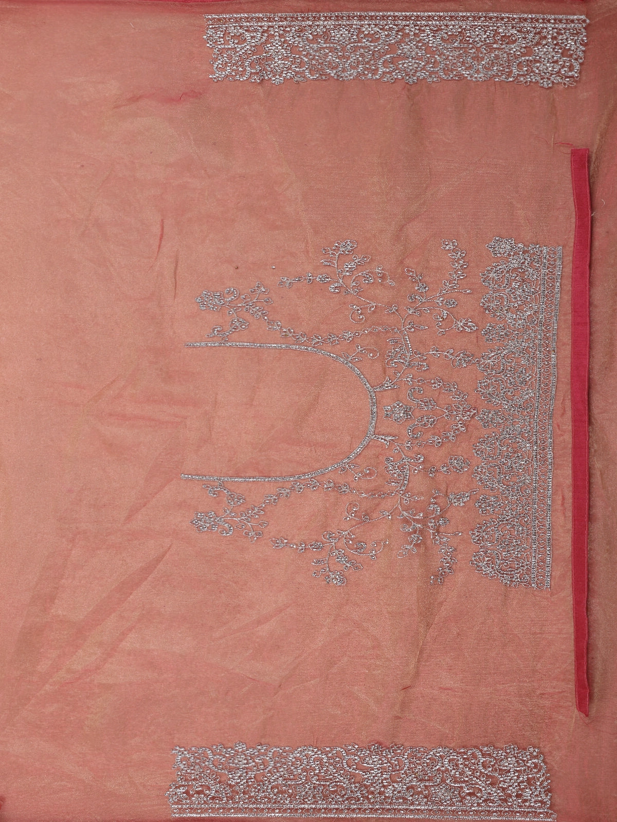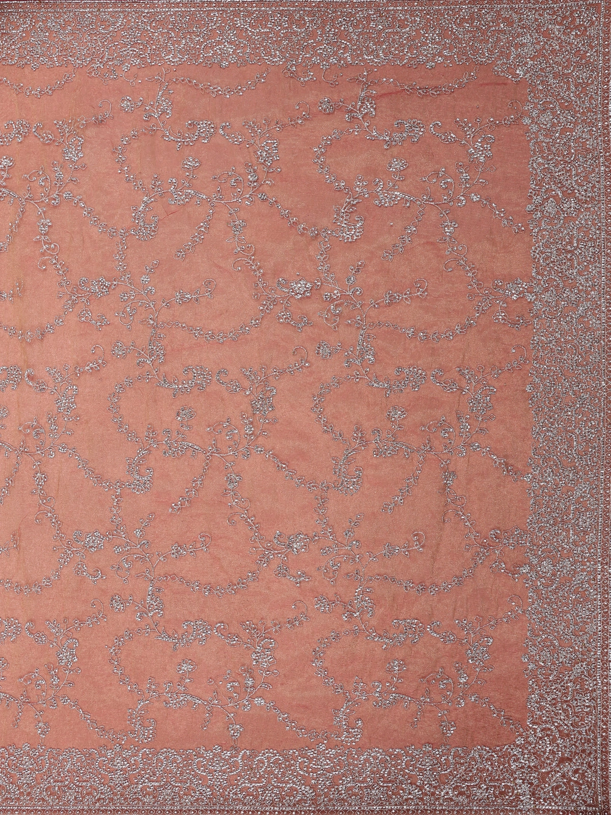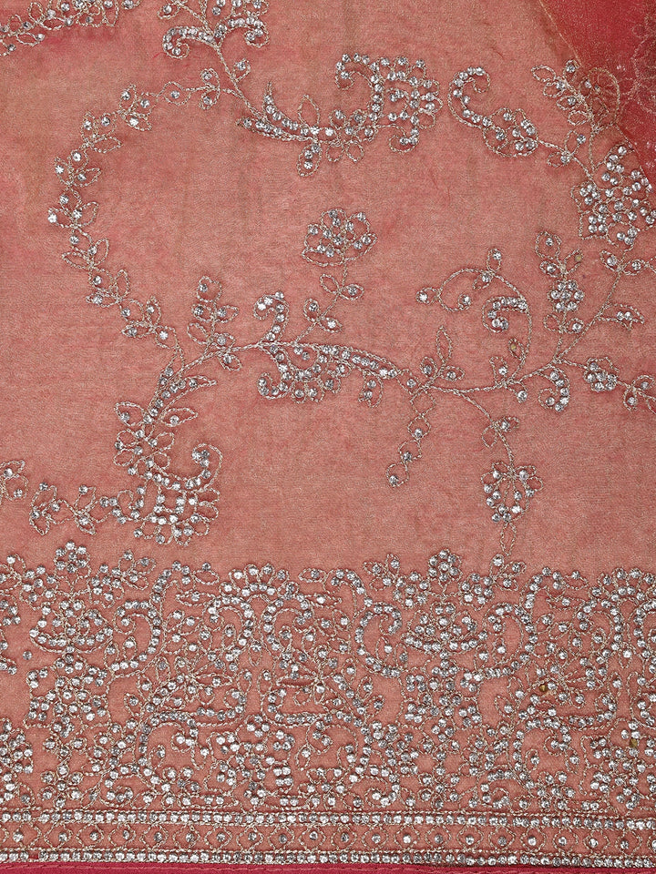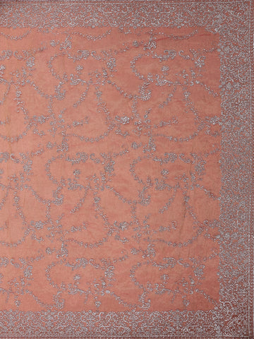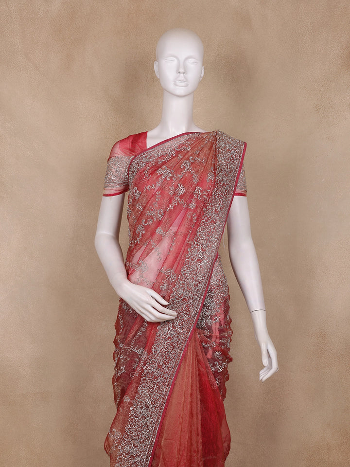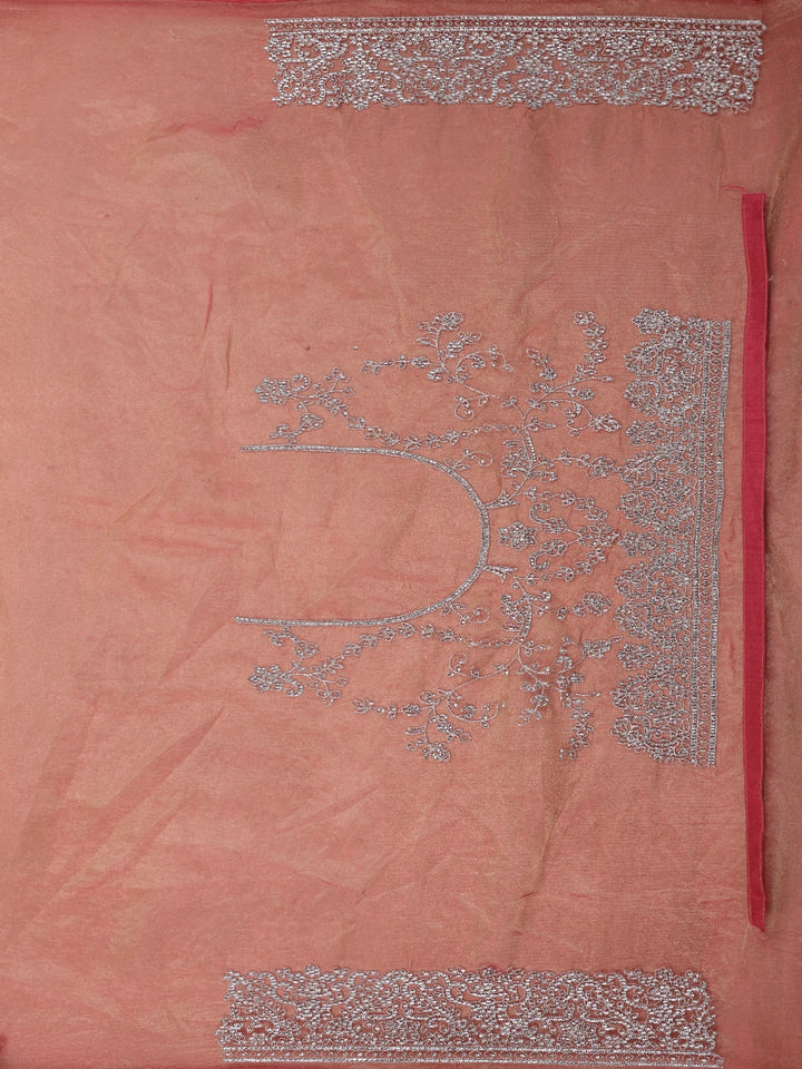 Pink Floral Embroidered Tissue Organza Saree