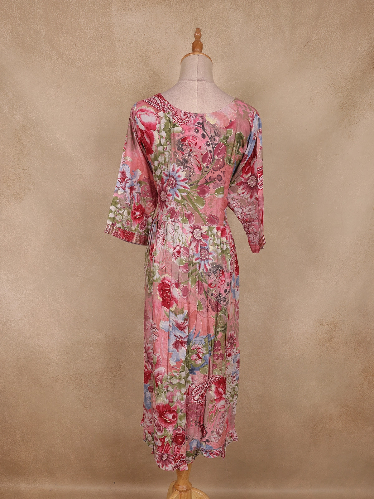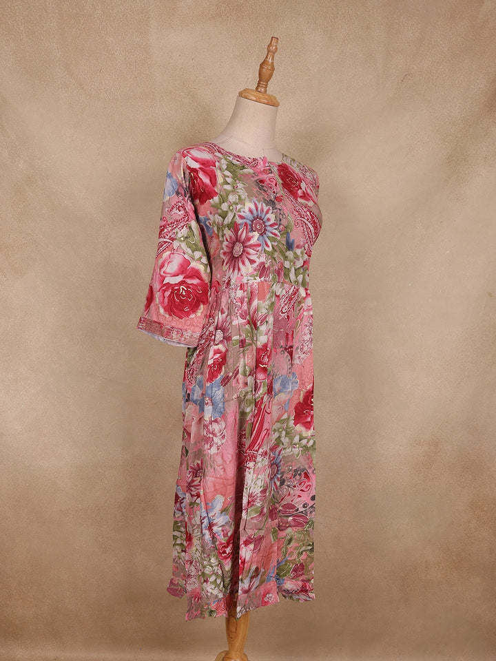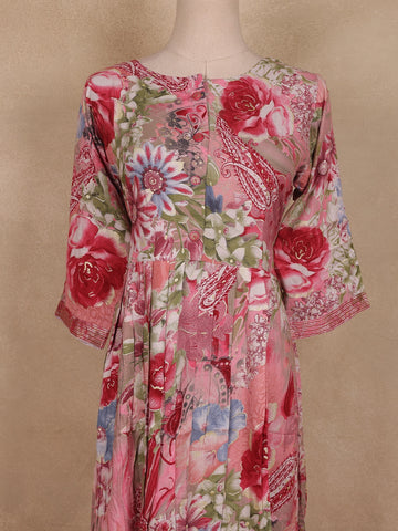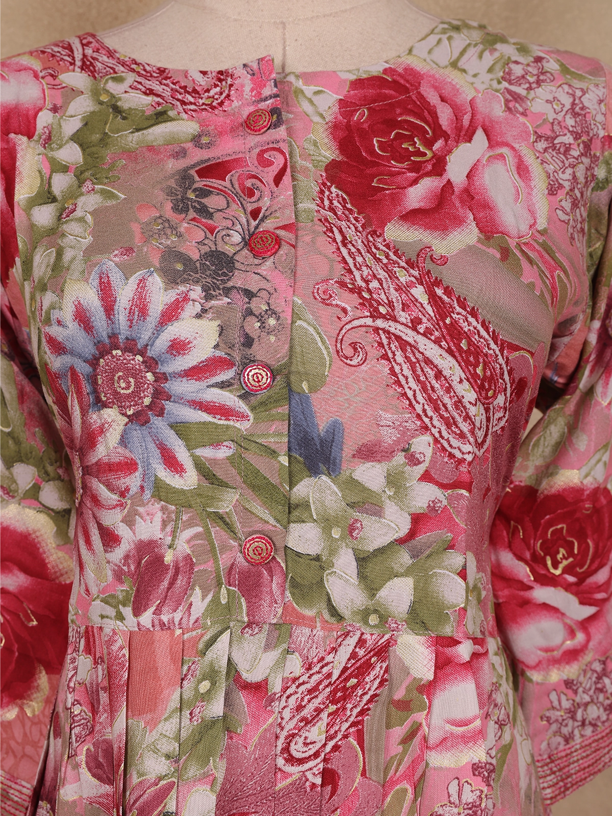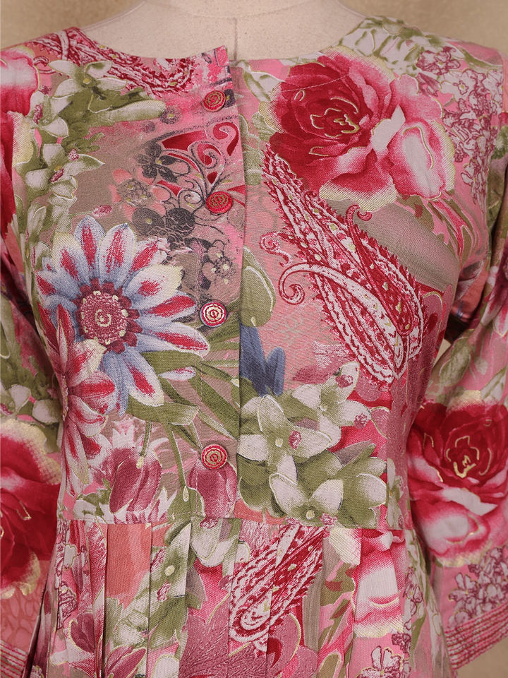Radiate charm and elegance with this Pink Floral Print Design Cotton Kurti, crafted for the modern woman who loves timeless ethnic style with a splash of color. Made from soft and breathable cotton fabric, this kurti offers a perfect balance of comfort and sophistication. The pink base is beautifully adorned with multicolor floral prints in shades of red, blue, green, and white, creating a lively and refreshing aesthetic.